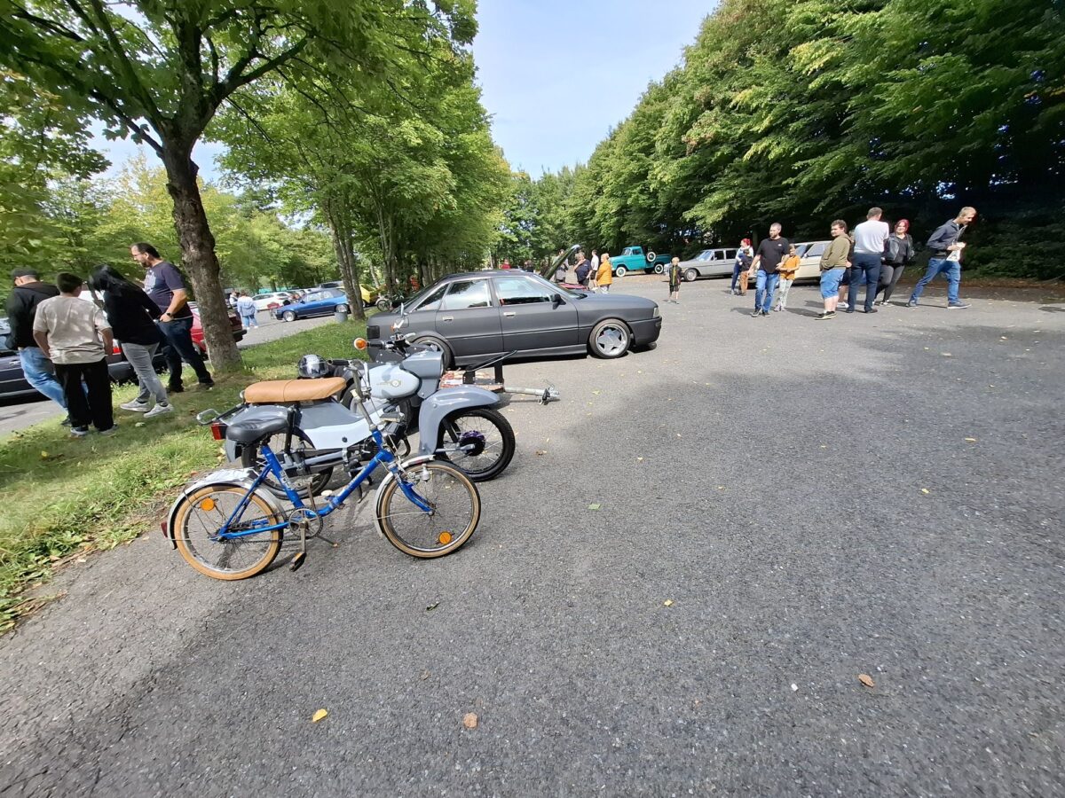 „Es war ein Kommen und Gehen und ich möchte allen für ihre Anwesenheit danken“, fügten die Kioskpächter Celine und Emilio Pelzer zufrieden an. In die Reihen mischten sich zweirädrige Mopeds und Motorräder, und ein besonderer Liebhaber hatte einen Anhänger und ein betagtes Fahrrad abgestellt. In der Überzahl waren die fein herausgeputzten Mercedes, BMW und Audis aus den 1950er-Jahren und vereinzelt auch Kleinkrafträder der Marke Quickly und Kreidler. Auffallend wirkte ein zweisitziges Kleinkraftrad der Marke Simson „Star“ aus der sogenannten Vogelserie des VEB Simson. Das Modell hieß von 1964 bis 1968 „SR4-2“ und ab 1968 bis 1975 „SR4-2/1“. Einige kamen mit ihrem Ackerschlepper zur Freizeitanlage und gaben Auskunft zu ihren motorisierten Arbeitsgeräten.