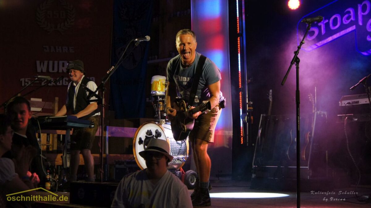 Der Samstag begann mit einem Jubiläum. So stand die Band „Highline“ bereits zum 20. Mal auf der Bühne beim O’Schnitt. Die Musiker schonten sich keineswegs und gaben Vollgas, es war ein Abend der Superlative in der O’Schnitthalle wie seit Jahren nicht mehr. Aber auch auf dem Vorplatz herrschte trotz leichtem Nieselregen dank der zweiten Pilsbar, der Fotobox und dem Essensstand reges Treiben.