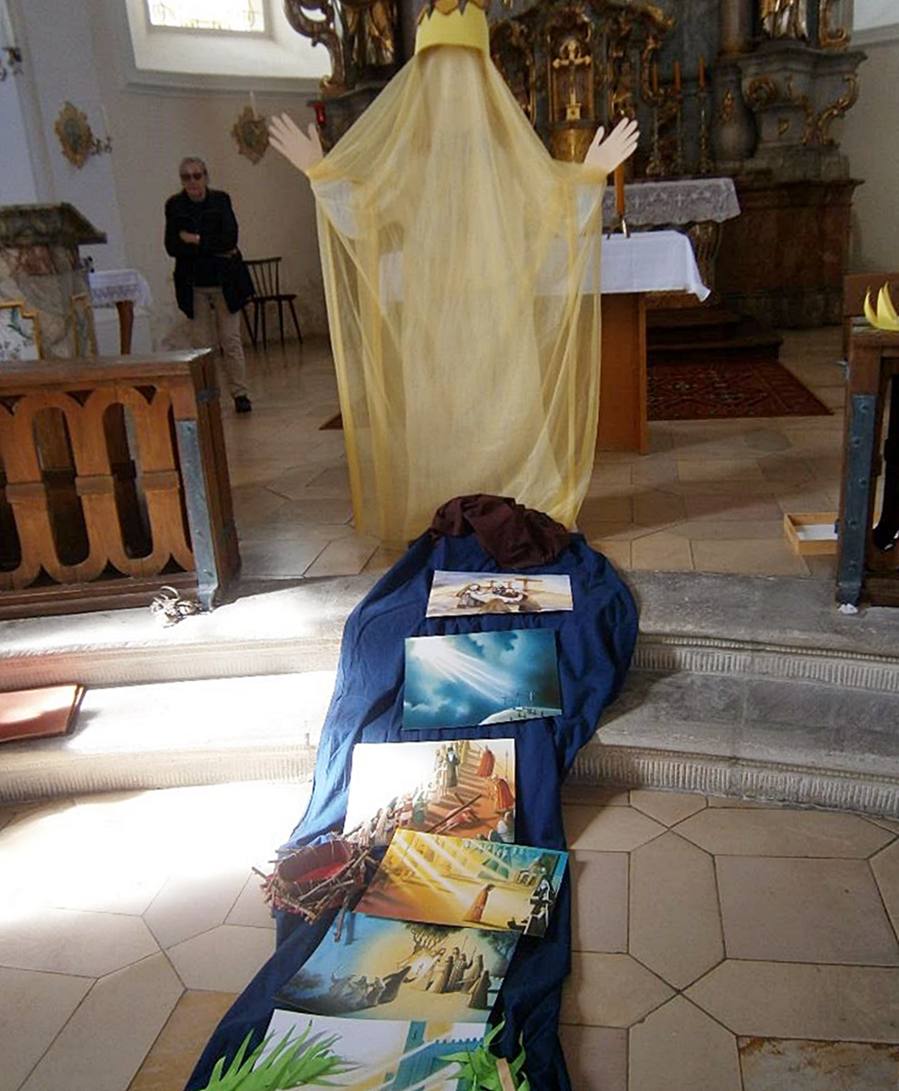 Im Anschluss folgte die Darstellung der Auferstehung Jesu. Unterstützt durch Bilder, Gegenstände und Musik wurde auch dieses zentrale Ereignis des Osterfestes den Kindern anschaulich nähergebracht. Als Höhepunkt sangen die Kinder mit Bewegungen das Lied „König der Liebe“ – eine musikalische Botschaft, die das Thema des Tages abrundete.