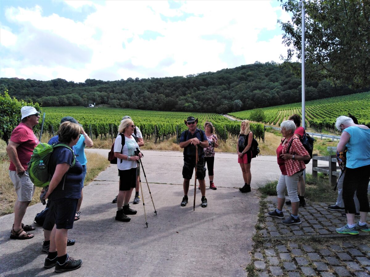 Das Ziel war am 16. Juli Rödelsee, der Weinort am Fuß des Steigerwaldes. Nach einer ca. zweistündigen Busfahrt wurde der idyllisch gelegene Weinbauort Rödelsee erreicht. Dort wartete schon ein Wanderführer auf die Teilnehmer, der mit der Gruppe den Schwanberg, den Hausberg von Rödelsee, erwanderte.