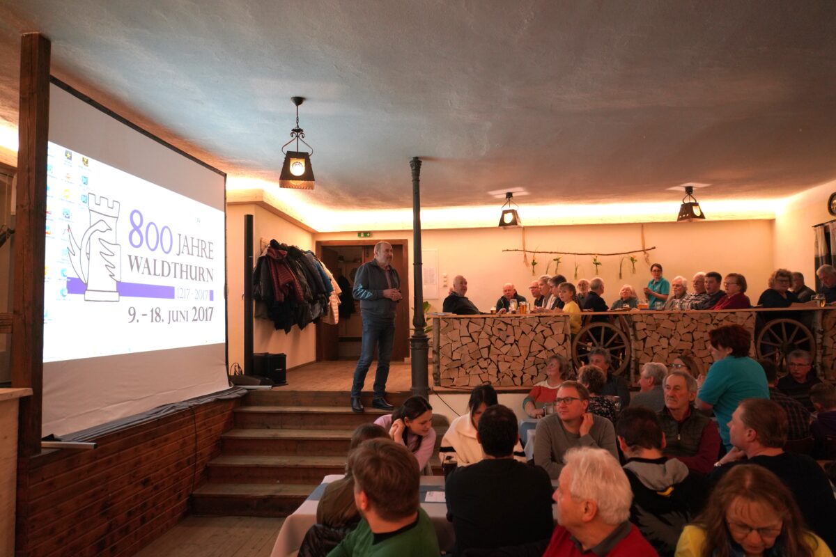 Werner Pankotsch hatte aus, nach eigenen Angaben, 12-Stunden-Film vom Waldthurner Heimatfest 2017 insgesamt in wochenlanger Arbeit zwei Stunden zusammengestellt. Der Kühnhauser – Saal quillte förmlich von Besuchern und Interessierten über. Das Wirtshausteam servierte Getränke, aber auch Bratwürste, Sulzen oder auch Brotzeiten dazu, was ein gemütlicher Kinoabend werden musste. Viele werden es als „unglaublich“ empfinden, dass das Heimatfest hinsichtlich 800 Jahre Waldthurn bereits fast sieben Jahre wieder vorbei ist. Der OWV mit Werner Pankotsch zeigte unter dem Motto: „Dou woar ma dabei“ nun Erinnerungen von diesen einmaligen Heimatfesterlebnis (09. bis 18. Juni 2017).