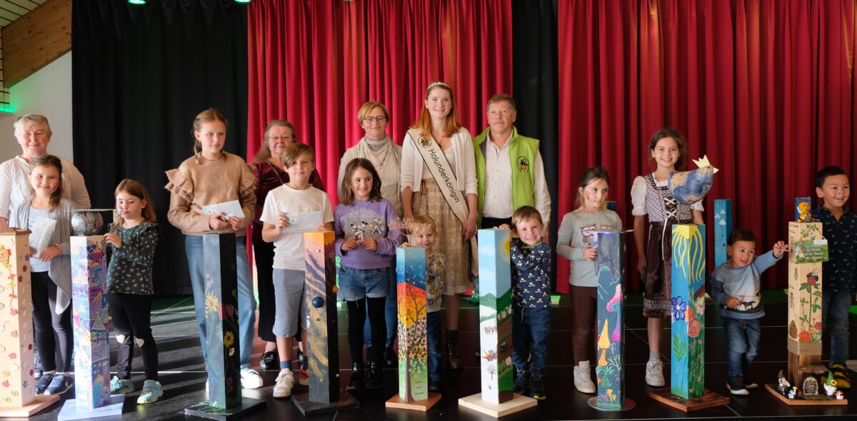 Bereichert wurde der Familiennachmittag mit viel Unterhaltung für die Kids. Büchsenwerfen, Kinderschminken, Ringe werfen, eine Malecke und ein Bilderrätsel mit Makroaufnahmen von Stelen. Die Auszeichnung der „Künstlerinnen und Künstler“ der von der Jury ausgewählten Stelen nahmen Holunder-Königin Monika Hirtreiter, Landschaftsarchitektin und Landkreis-Gartenfachberaterin Maria Treiber, Förderlehrerin Maria Neumann und OGV-Ortsvorsitzender Josef Höllerl vor.