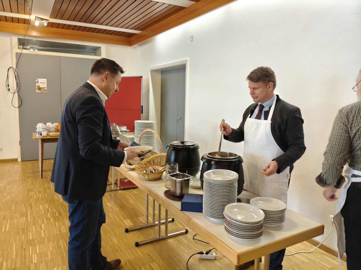 Den gelungenen Vormittag rundete das traditionelle Fastenessen der KAB im Pfarrsaal von Maria Waldrast ab. Dort wurden Kartoffelsuppe und marinierte Heringe angeboten, die vom neugewählten Oberbürgermeister Weidens serviert wurden. Ein rundum gelungener Palmsonntag, der Gemeinschaft, Glauben und Engagement auf schöne Weise miteinander verbunden hat.