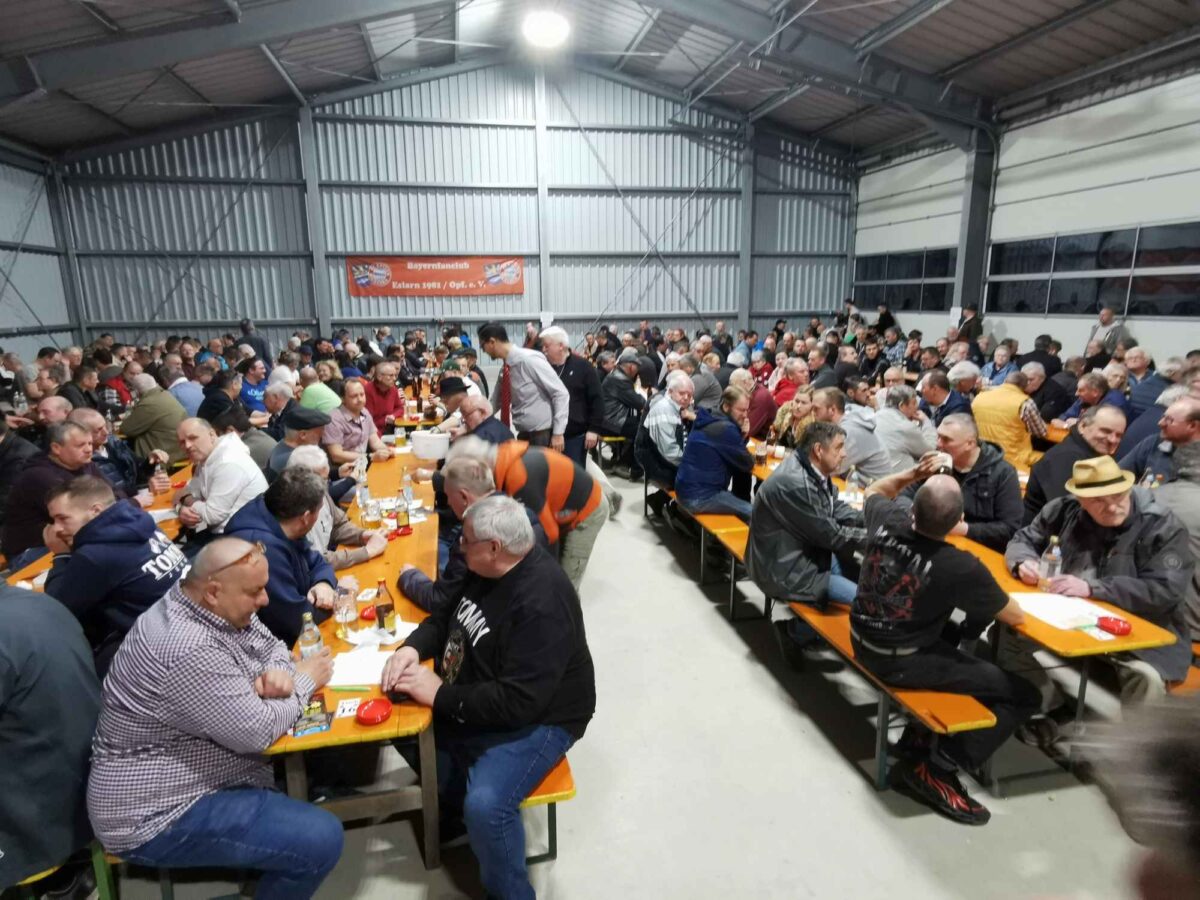 Ein Lob für die großzügige Halle am “Eslarner Tannenhof” ging an Bayernfan und Unternehmer Thomas Bösl. Einige Kartenfreunde nahmen sogar eine Anreise aus dem 291 km entfernten Kaufbeuren, aus Dinkelscherben (258 km) und Pucking (256 km) in Kauf. “Wir sind voll und ganz mit der Teilnahme und dem Austragungsort zufrieden”, stellten Vorsitzender Timo Brenner, Stellvertreter Benjamin Heider und Schriftführer Stefanie Singer fest. Nach der gelungenen Vorjahres-Premiere mit dem Besucherrekord von 88 Tischen beim ersten Kartenabend am “Tannenhof” konnten die Bayern den Rekord zwar nicht einstellen, aber die neuformierte Vorstandschaft signalisierte beste Zufriedenheit.