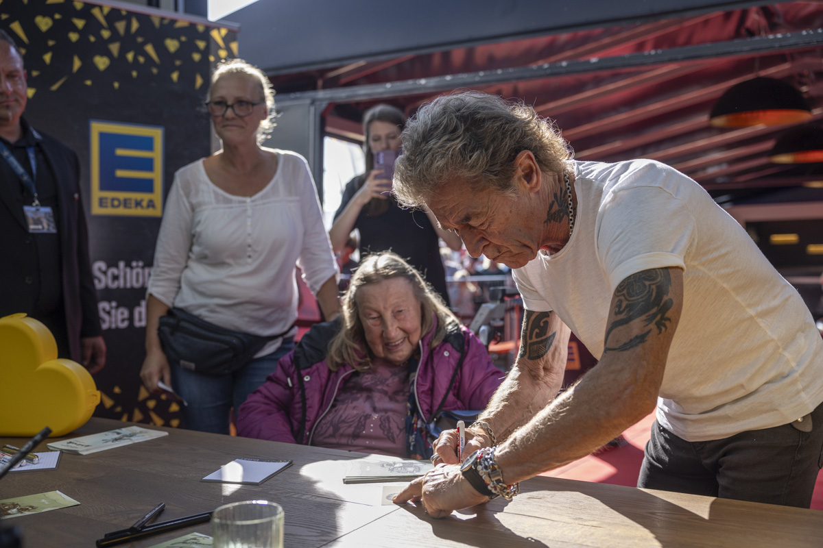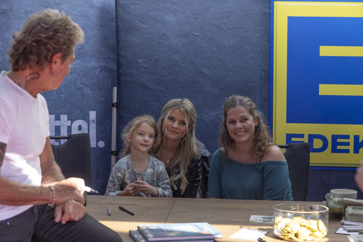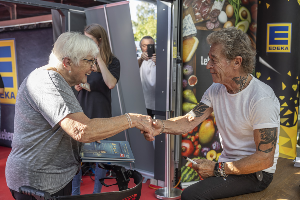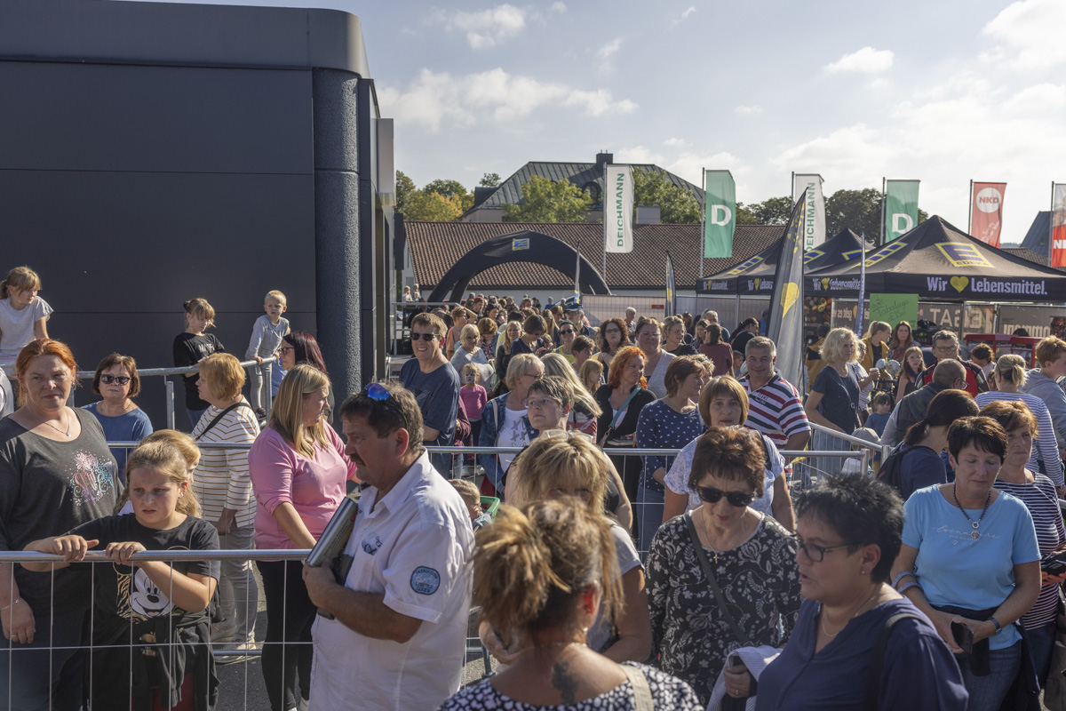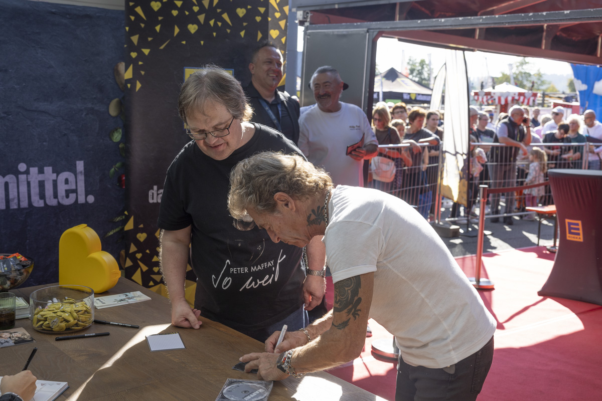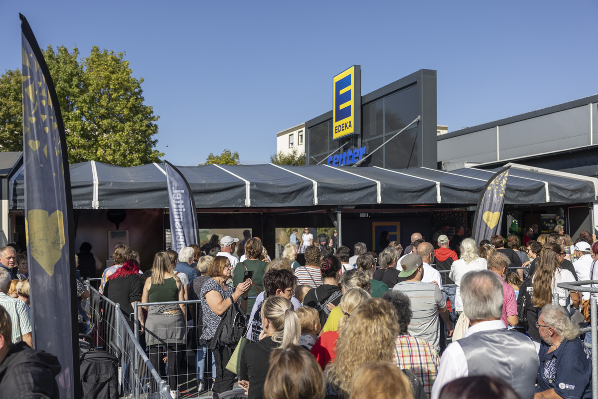 Eltern mit ihren Kindern, Jugendliche, aber auch Senioren wollten sich die Gelegenheit nicht nehmen lassen, ein Blick auf Peter Maffay zu erhaschen, ein Selfie mit ihm zu machen oder gar ein Autogramm von ihm zu bekommen. Daher reihten sich immer neue Besucher in der Schlange ein, die sich zeitweise über den kompletten Parkplatz erstreckte.
