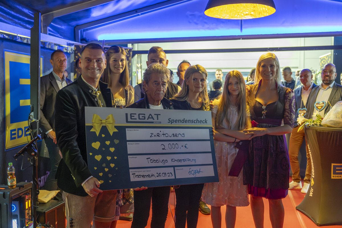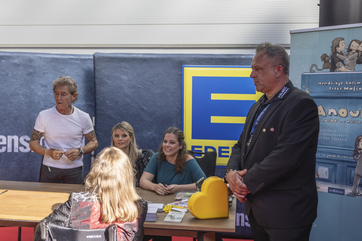 Groß war die Freude bei Peter Maffay, als er am Abend erfuhr, dass der komplette Gewinn aus dem Buchverkauf und ein ordentlicher Bonus vom Edeka-Team den Kindern in Not zugutekommen soll. So konnte an den Sänger ein Scheck im Wert von 2000 Euro für seine „Tabaluga Kinderstiftung“ überreicht werden.