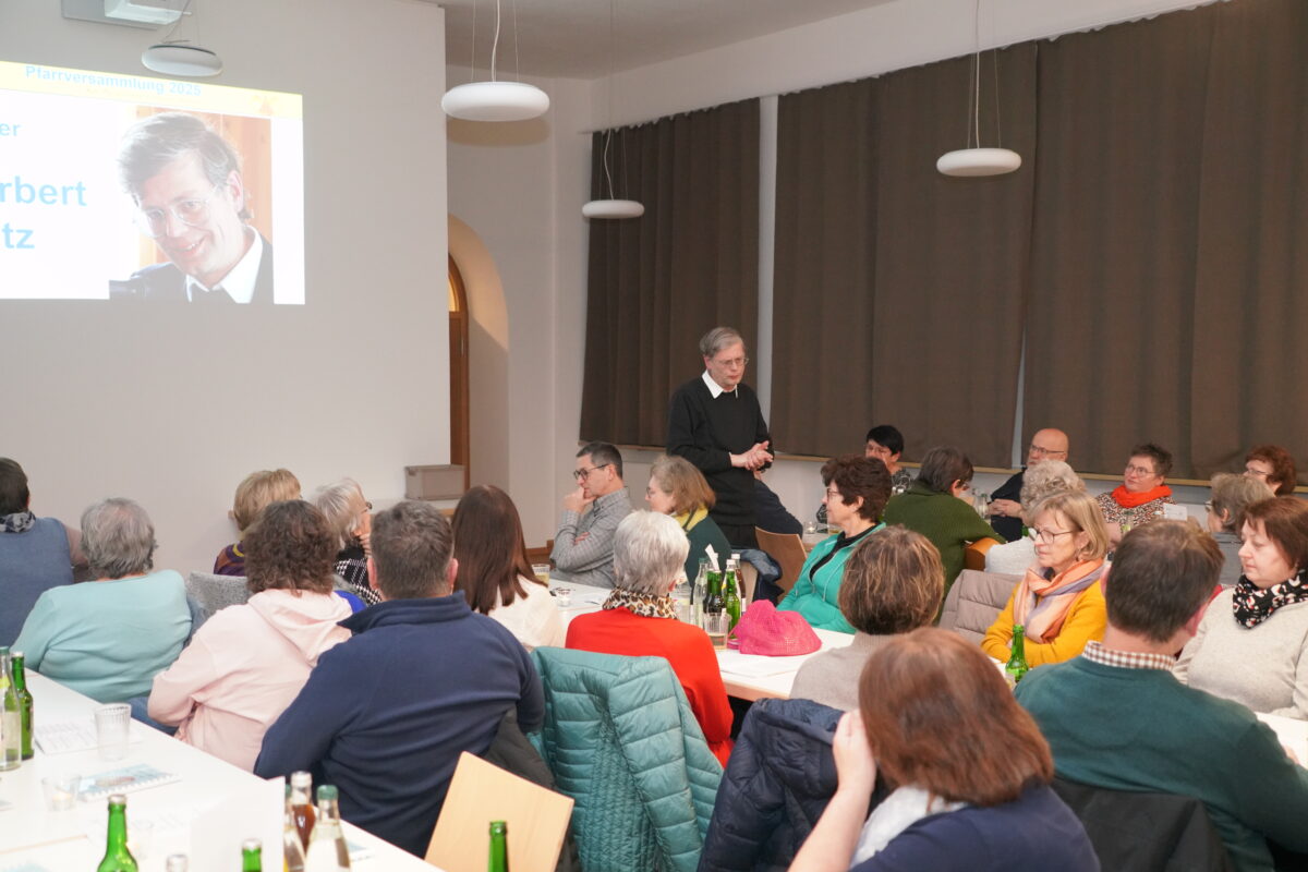 Die Zahl der Katholiken in der Pfarrei sank zum 31. Dezember 2024 auf 1.660 (Vorjahr: 1.690), wobei fünf Kirchenaustritte verzeichnet wurden. Die Kirchenbesucherzahlen sind stabil geblieben: Die Zählung ergab 437 Besucher im Herbst 2024 (Vorjahr: 410) und 371 im Frühjahr (2023: 319), die Kirchenbesucherzahl stellte sich so im Durchschnitt bei beachtlichen 24 Prozent ein. Leider sind in diesem Jahr 28 Frauen und Männer verstorben.