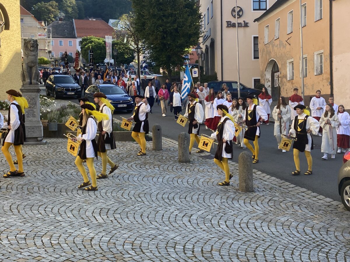 Mit dem Patrozinium hatte der Frauenbund den idealen Rahmen für seinen Festgottesdienst zum 50-jährigen Bestehen. Unter den Klängen der Kolpings-Fanfarengruppe Tännesberg bewegte sich der Festzug mit Pfarrer Wilhelm Bauer, seinen Ministranten, den Fahnenabordnungen der Vereine und Verbände sowie den Vertretern des Marktes Tännesberg vom ehemaligen Forstamt zur Pfarrkirche. Einen besonderen Platz an der Spitze des Zuges nahm die starke Gruppe des Frauenbundes ein.