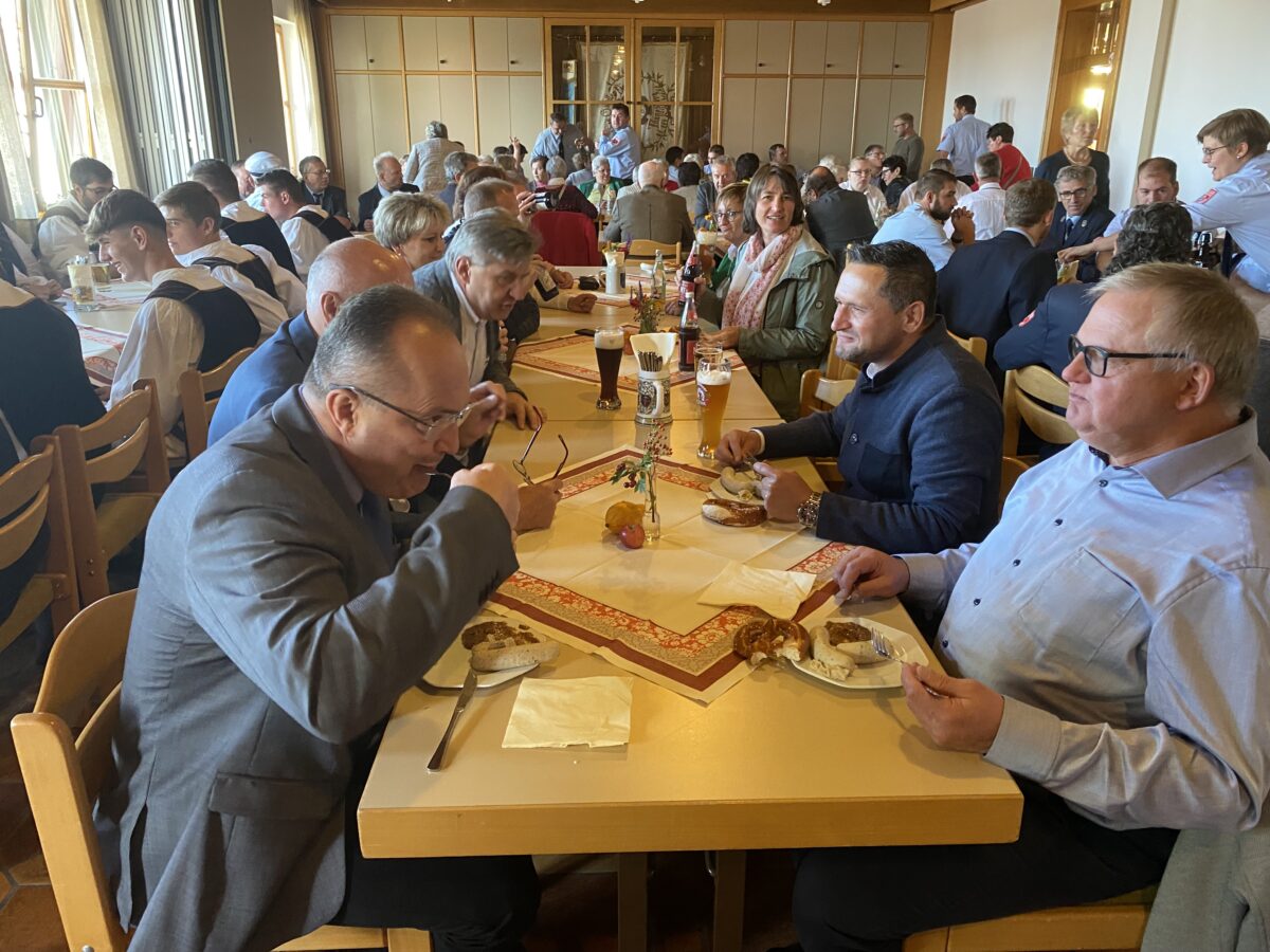 Ein zünftiger Frühschoppen organisiert von der Vorsitzenden des Frauenbundes Sonja Schmid-Herdegen mit ihren Helferinnen durfte natürlich nicht fehlen. Im voll besetzten Pfarrheim ließen sich die Gäste Weißwurst, Wiener oder Käse mit einem frischen Getränk schmecken. Bestimmt ist bei manchen das gewohnte Mittagessen ausgefallen, denn übrig geblieben ist fast nichts mehr.