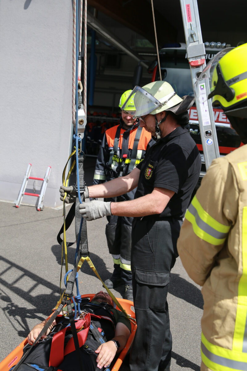 Lehrgangsleiter KBM Andreas Luber bedankte sich bei allen Ausbildern und Teilnehmern, welche an diesem Pilotlehrgang teilgenommen und mitgewirkt haben. Kreisbrandrat Christof Strobl unterstrich nochmals die Wichtigkeit dieser Gerätesatz Absturzsicherung. Zum Abschluss wurden die Teilnahmebescheinigungen ausgeteilt und bei einem Mittagessen konnte das Wochenende ausklingen.