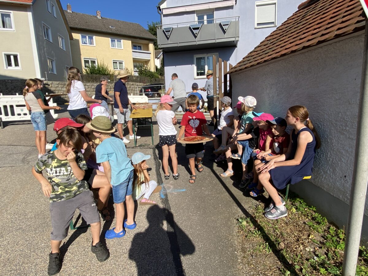 Ein Renner zum Abschluss des Ferienprogramms der Kinder ist das „Pizzabacken“ am OWV-Backofen, bei dem Richard Schneider mit seinem Team alle Hände voll zu tun hatten. Über vierzig Kinder rollten ihren Teig aus und belegten ihn nach ihrem Gusto. Pizza Salami, Funghi, Schinken, Hawaii verfeinert mit Zwiebel, Käse, Ananas oder Paprika, sorgten für eine reichhaltige Speisekarte. Wer vegetarisch wollte, konnte es auch haben. Ungeduldig warteten die Kinder auf ihre Pizza, die „Michl“ und „Tom“ pausenlos in den Backofen schoben und knusprig gebacken wieder herausholten.