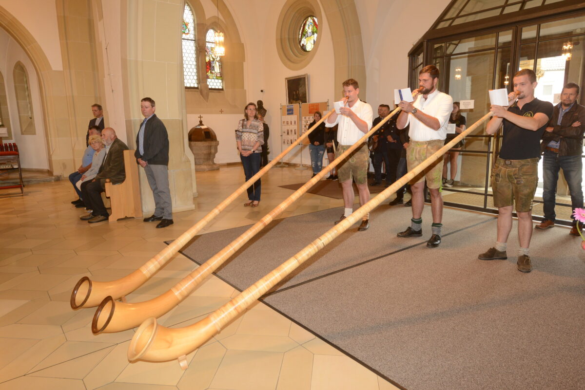Die Katholische Pfarrgemeinde lud nach dem Gottesdienst zur Abschiedsfeier ein. Wegen Niederschlags musste die Veranstaltung teils ins Pfarrheim verlegt werden, obwohl geplant war, sie komplett im Freien auf dem Pfarrplatz abzuhalten. Die Stadtkapelle spielte zum Abschied, während Vertreter der Vereine und Organisationen ihre Abschiedsgeschenke persönlich an Pater John übergeben konnten.