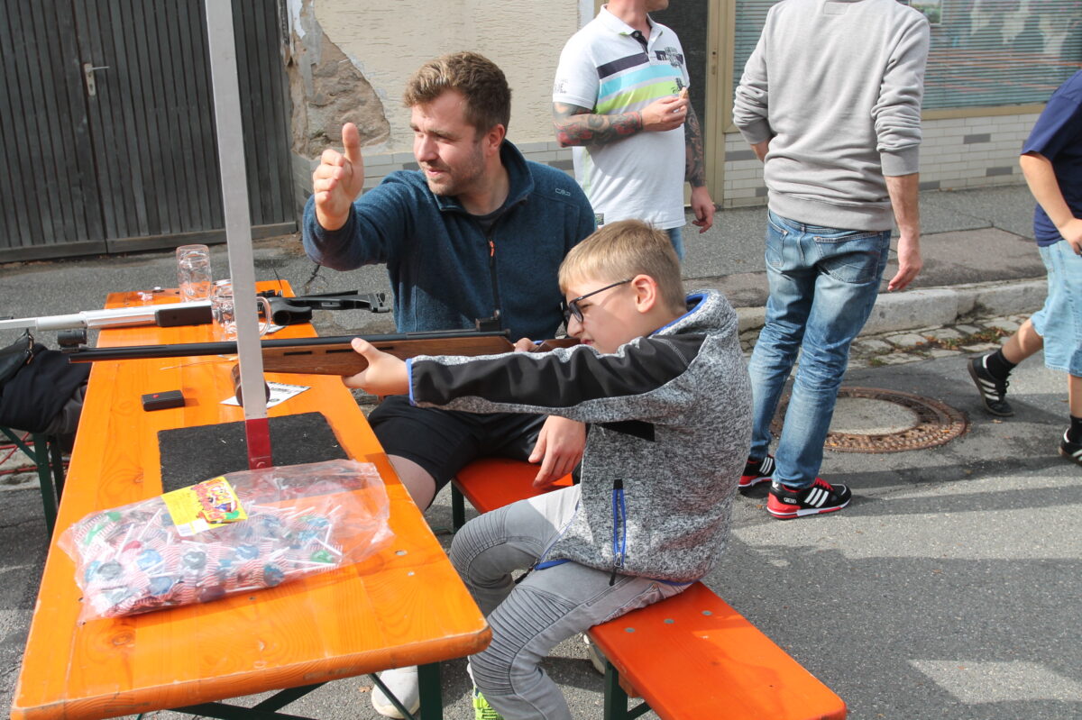 Auch die Kinder kamen wie immer nicht zu kurz. Bereits am Samstag hatte sich immer wieder das Glücksrad gedreht, und am Sonntag hatten viele Mädchen und Jungen ihren Spaß, darunter in der Hüpfburg oder im großen Sandkasten. Ein gutes Auge war bei dem vom Pleysteiner Schützenverein angebotenen Schießen mit dem Lasergewehr gefragt.