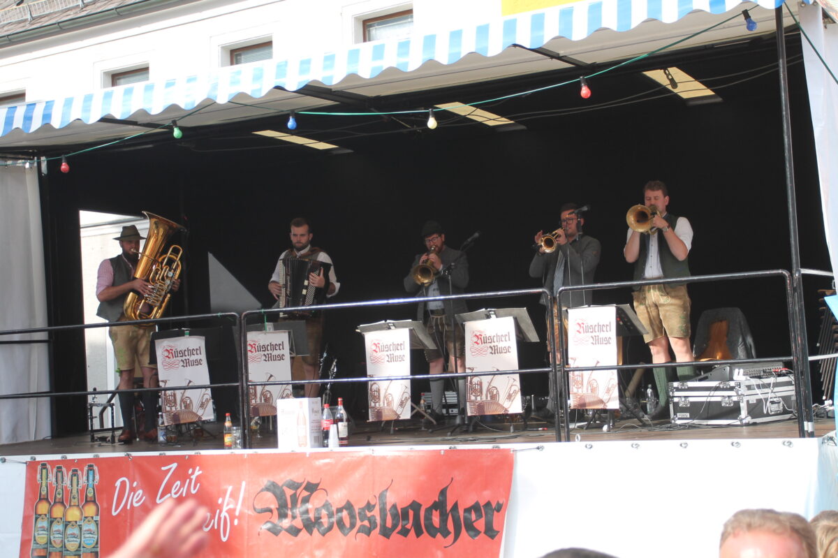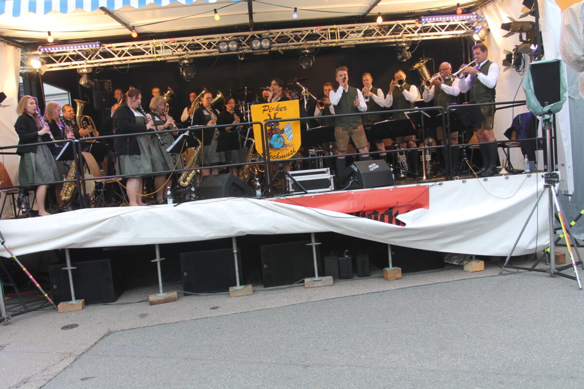 Die Zeit verging also nahezu wie im Flug, bis gegen 18.30 Uhr die „Bambini“ der Prinzengarde Pleystein ihrem Auftritt entgegenfieberten. Julia Beugler und ihr Team hatten im Vorfeld Tänze einstudiert, die das Publikum vollauf begeisterten. Also gab es lautstarke Rufe nach einer Zugabe mit dem aktuellen Tophit „APT“. In der Zwischenzeit war die „Pirker Blechmusi“ mit den Aufbauarbeiten für ihren Auftritt beschäftigt. Die Kapelle ist längst ein Garant für Topunterhaltung, angefangen von böhmischer Blasmusik bis hin zu Partyhits. Auch zum Ausklang des Bürgerfestes zeigten sich die Musikerinnen und Musiker von ihrer besten Seite und zogen alle Register ihres Könnens.