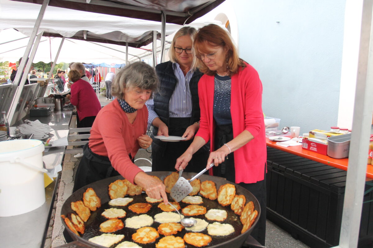 Bis zum Gastspiel der „Rüscherl-Muse“ war es mit dem Regen aber vorbei. Die Musiker, die am 8. November im „Bachofner-Saal“ das zehnjährige Bestehen im Rahmen eines Jubiläumsabends feiern, unterhielten die Besucher mit Songs aus aller Welt. Bereits zum Mittagessen war neben üblichen Grillspeisen und Fischspezialitäten unter anderem deftiger Schweinebraten angesagt gewesen. Und wer danach Lust auf ein leckeres Dessert oder Süßes hatte, kam ebenfalls auf seine Kosten. Beweise gab es in Hülle und Fülle, ob etwa an der Kuchenbar oder am Dotsch-Stand.