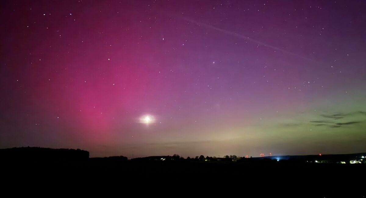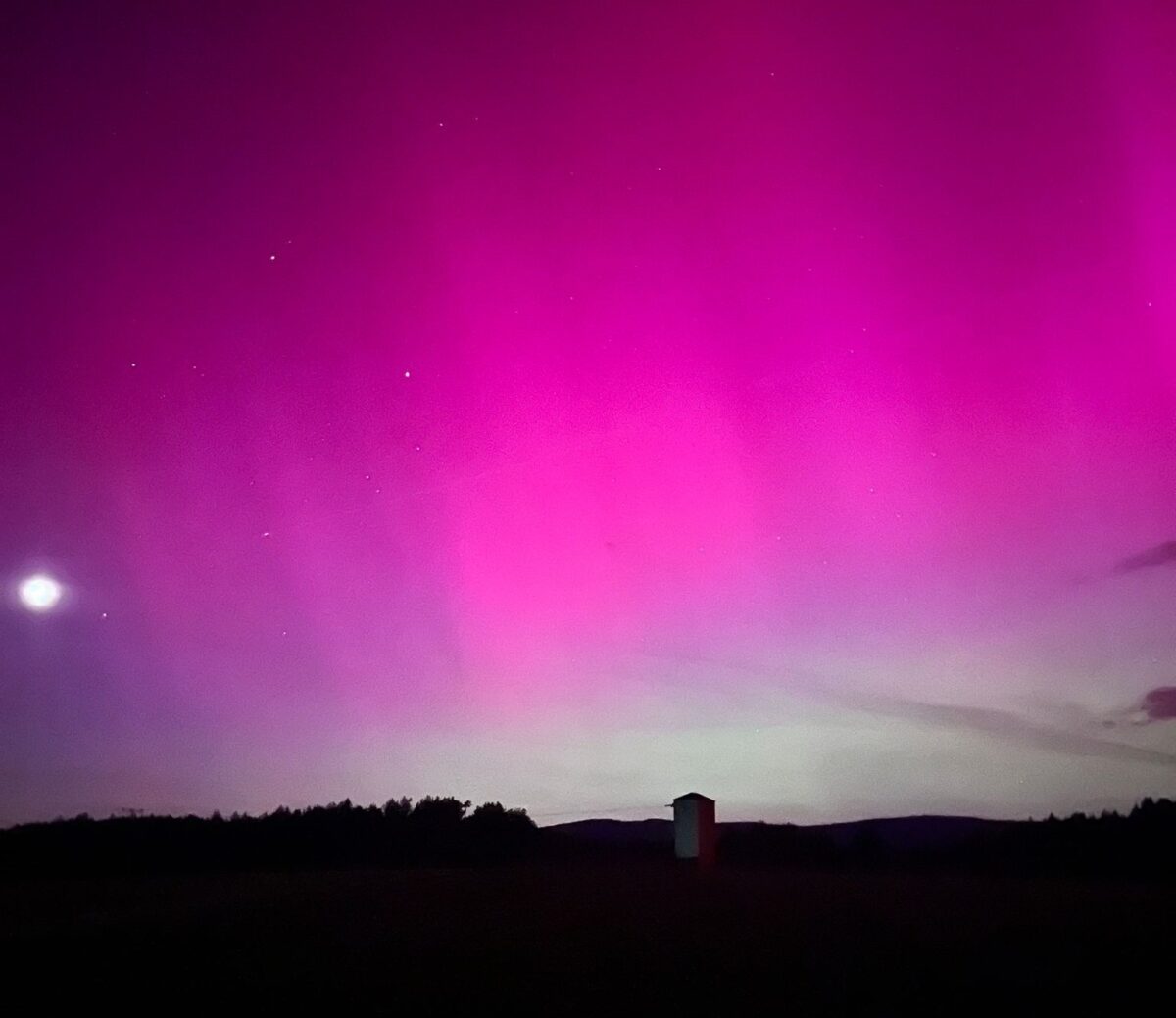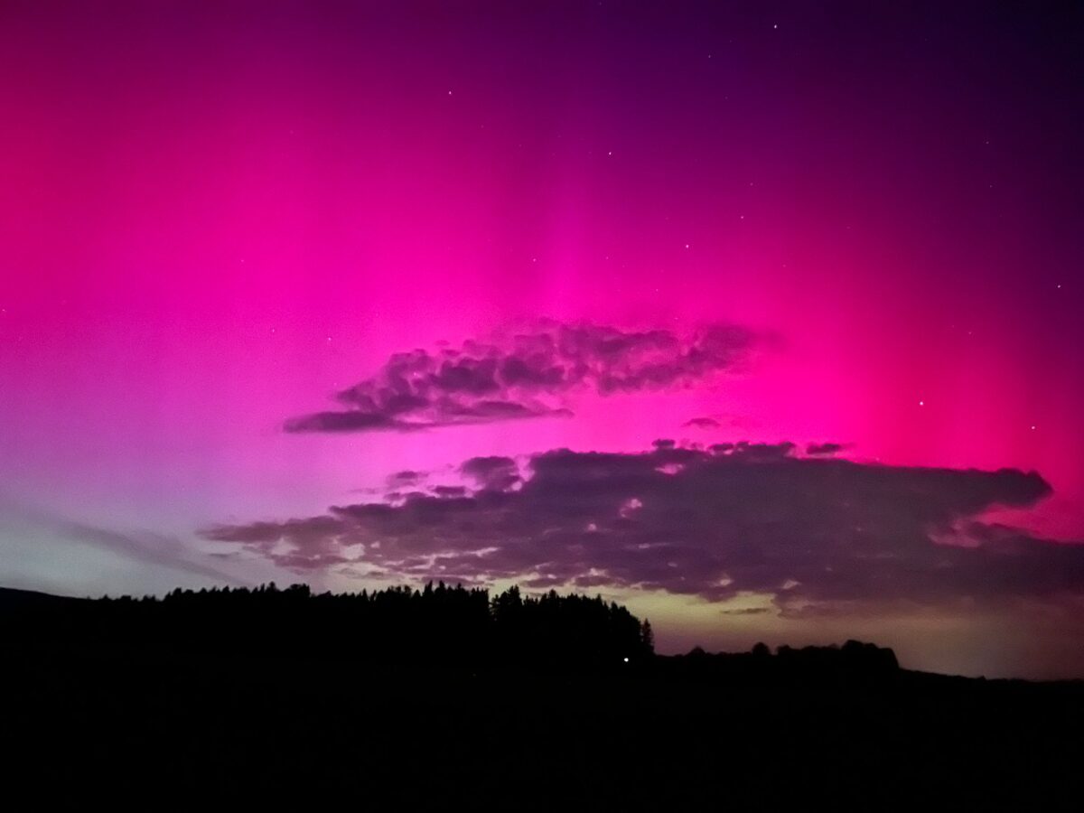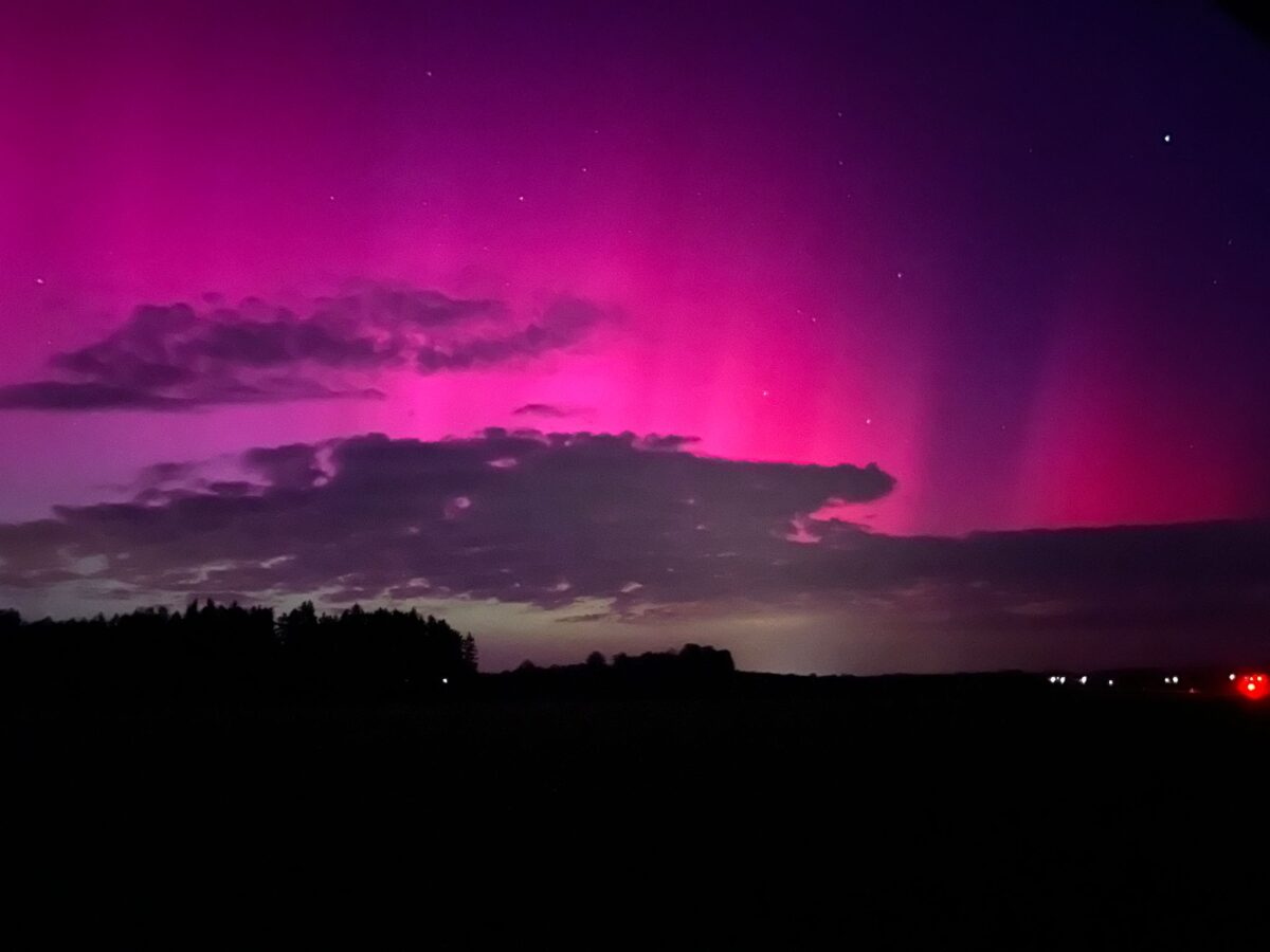 Und diese Prognose sollte sich bewahrheiten. Auch in der nördlichen Oberpfalz tauchte das Polarlicht den Himmel am Freitag gegen 22 Uhr in eine geradezu mystische rosarote Farbe. Verstärkt wurde der Effekt dieses Farbspektakels noch durch die Kameralinse. War der Himmel mit bloßem Auge nur in ein zartes Rot getaucht, erschien das nördliche Firmament als Foto noch weitaus spektakulärer und farbenfroher.