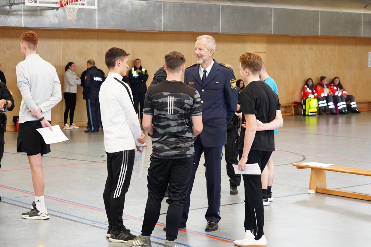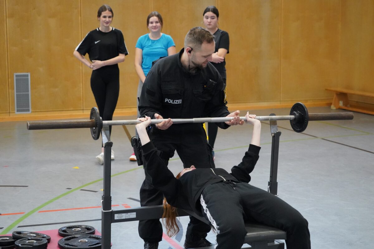 Der Sporttest beinhaltete die Stationen Bankdrücken, Pendellauf, Ausdauerlauf (Cooper-Test) und Springen über eine Kleinbank. Diese Übungen müssen beim Einstellungstest der Bayerischen Polizei bestanden werden. An der letzten Station wurde den Teilnehmenden ein exklusiver Einblick in die Unterkunft der Auszubildenden und das Lehrsaalgebäude gewährt. Wo und wie leben die Anwärter bei der Polizei? Die Polizeischüler/innen berichteten aus erster Hand über ihre Erfahrungen und beantworteten viele Fragen der Interessierten.