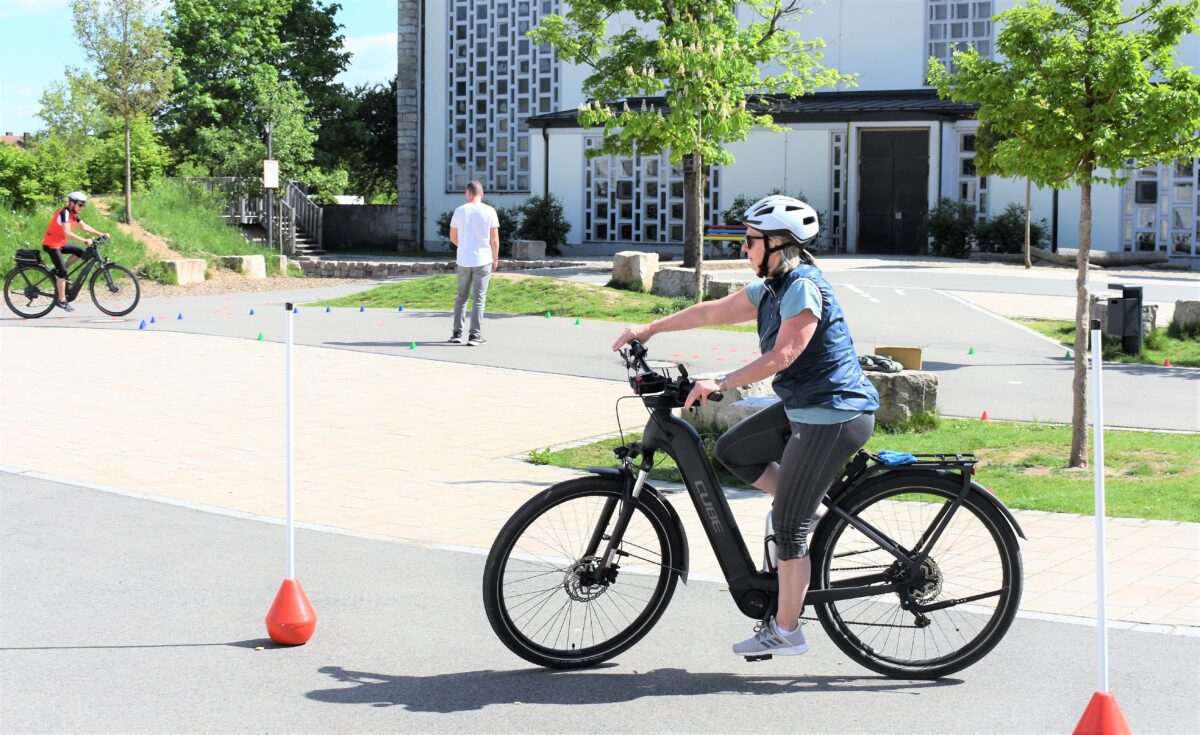 Danach waren die Senioren dran, die zuerst einen Ball in Empfang nehmen mussten, um ihn dann in einen bereitgestellten Behälter zu werfen. “Damit wird das Fahren mit nur einer Hand am Lenker geübt”, so Stopfer. Wichtig war aber auch der Umgang mit dem Pedelec selbst und das Handzeichen geben.