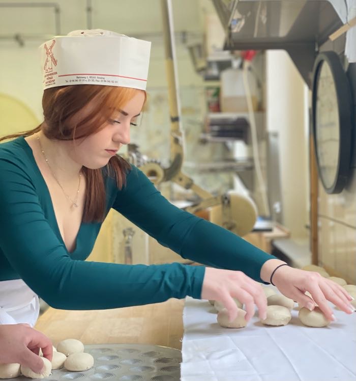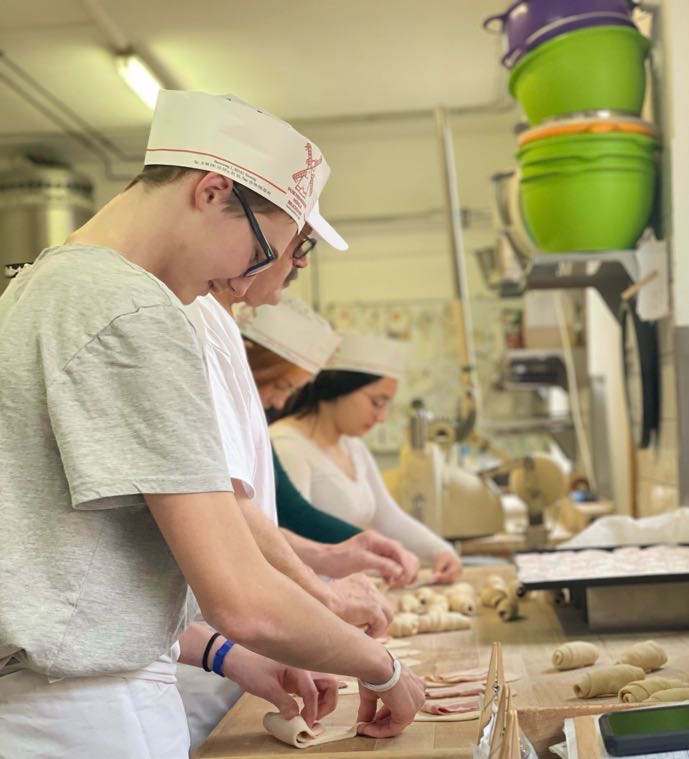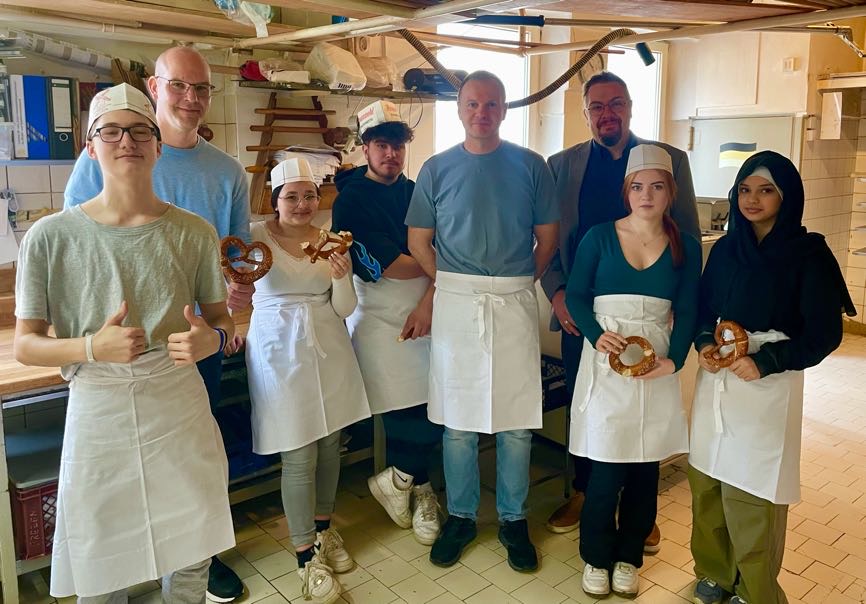 Die Praxisklasse der Pestalozzischule war im Rahmen ihrer praktischen Berufsorientierung Anfang dieser Woche zu Gast in der Bäckerei Beyer, wo Inhaber Philipp Beyer die Schülerinnen und Schüler zusammen mit seinen Angestellten in das Bäckerhandwerk eingewiesen hat.