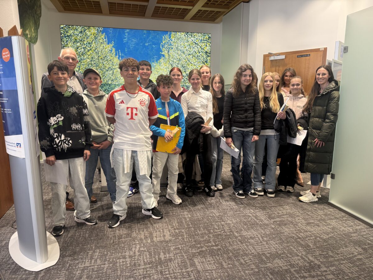 Die Klasse 7c der Wirtschaftsschule besuchte gemeinsam mit ihrer Lehrkraft Frau Siegler die Volks- und Raiffeisenbank in Eschenbach. Insgesamt 15 Schülerinnen und Schüler erhielten dabei spannende Einblicke in den Arbeitsalltag einer Bank.
