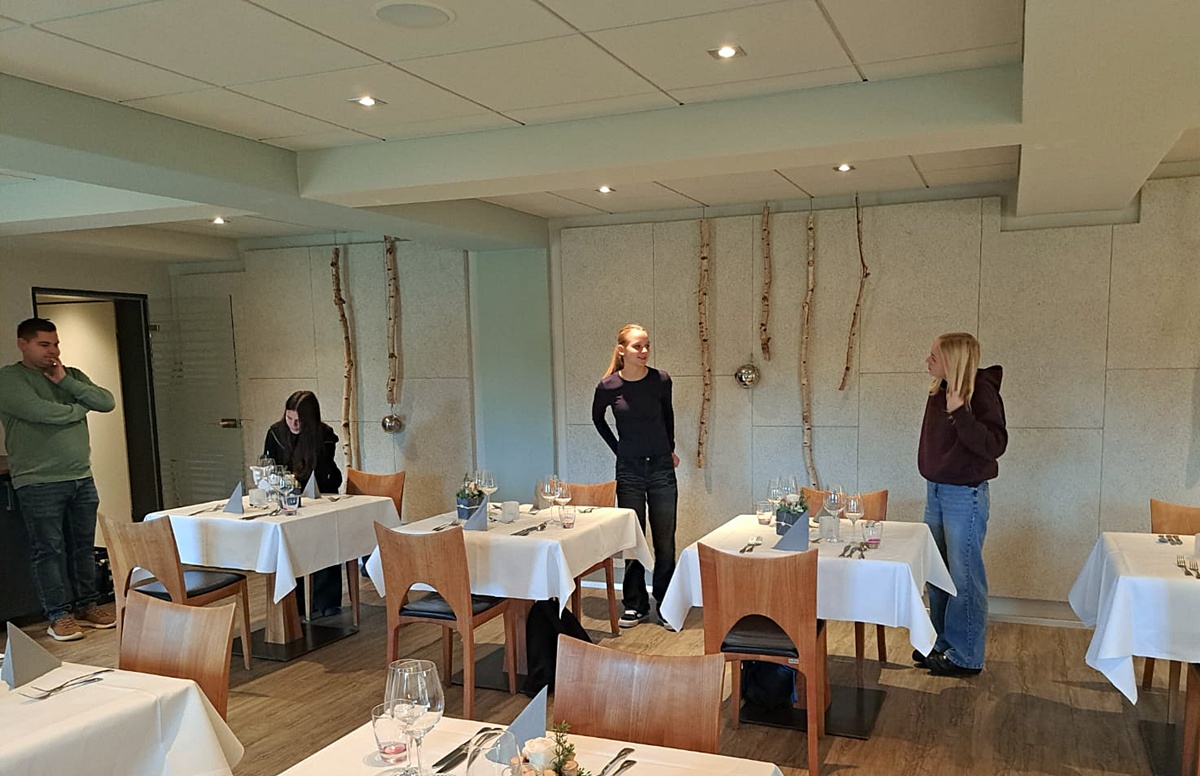 Im Anschluss durften die Schülerinnen und Schüler selbst aktiv werden und verschiedene praktische Tätigkeiten übernehmen. Unter Anleitung des Hotelpersonals wurden sie in Abläufe wie das Eindecken von Tischen, die Präsentation von Speisen und Getränken sowie einfache Serviceaufgaben eingebunden. Durch diese praxisnahen Erfahrungen erhielten die Jugendlichen ein realistisches Bild von den täglichen Herausforderungen und Abläufen in einem Hotelbetrieb. Dabei konnten sie ihre Fähigkeiten in Kommunikation, Organisation und Kundenservice direkt ausprobieren und vertiefen.
