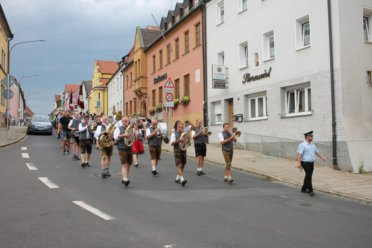 Viel Beifall ernteten unterdessen auf der Festbühne die Eschenbacher Stadtkapelle für ihr traditionell-alpenländisch-böhmisches Musikprogramm und ab 21 Uhr die sechs „Classic-Rocker“ der Weidener Band „Back-Beat“, die mit ihren mitreißend interpretierten Rock- und CountryEvergreens aus den 1960er und 1970er Jahren den Weihertürlplatz binnen kurzem in einen Dancefloor verwandelten. Für die deutsch-ungarisch-amerikanische Völkerverständigung leisteten die Evergreens von CCR, Beatles, Rolling Stones & Co. mehr als alle Bündnisse, „Unionen“ und Konferenzen. Mit einem Weißwurstfrühschoppen und volkstümlichen Weisen des Duos Herbert Kiefer und Andy Lindner klang das Bürgerfest am Sonntagvormittag geruhsam aus.