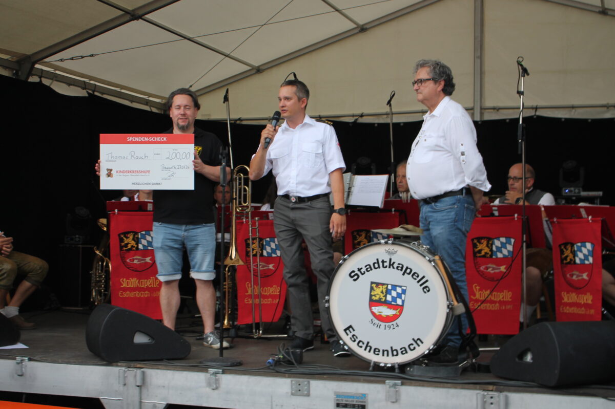 Allen, die dem Aufruf der Rotkreuz-„Helfer vor Ort“ um Spenden für ein neues Einsatzfahrzeug gefolgt waren – darunter auch der Stadt, die 20.000 Euro beigesteuert hatte –, dankte er für diese „großzügige und nicht selbstverständliche Unterstützung“. An eine Bürgerfesttradition anknüpfend übergab der Schirmherr eine persönliche 200-Euro-Spende, die er zur Weitergabe an die Kinderkrebshilfe Oberpfalz-Nord bestimmt hatte, an Christian Panzer.