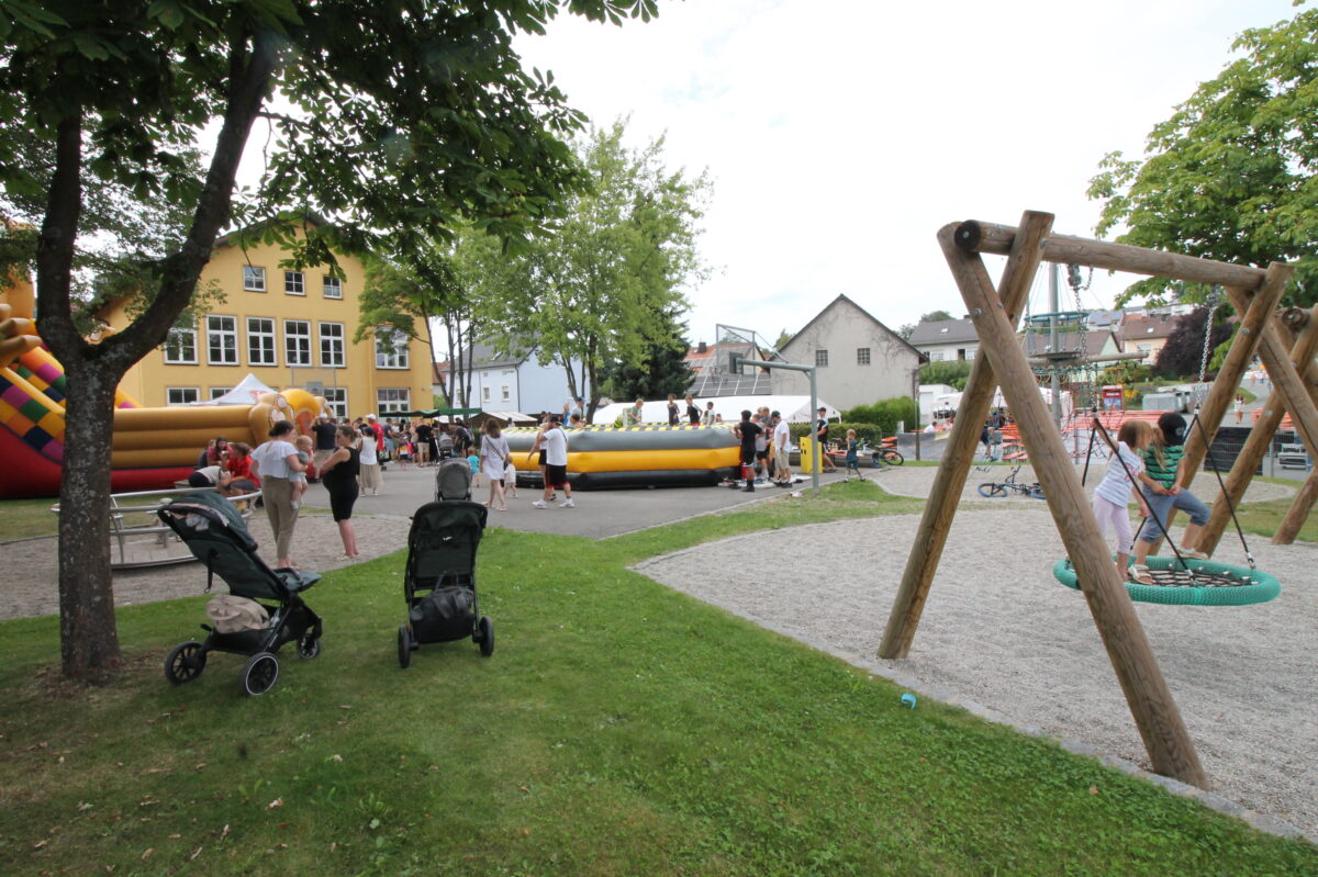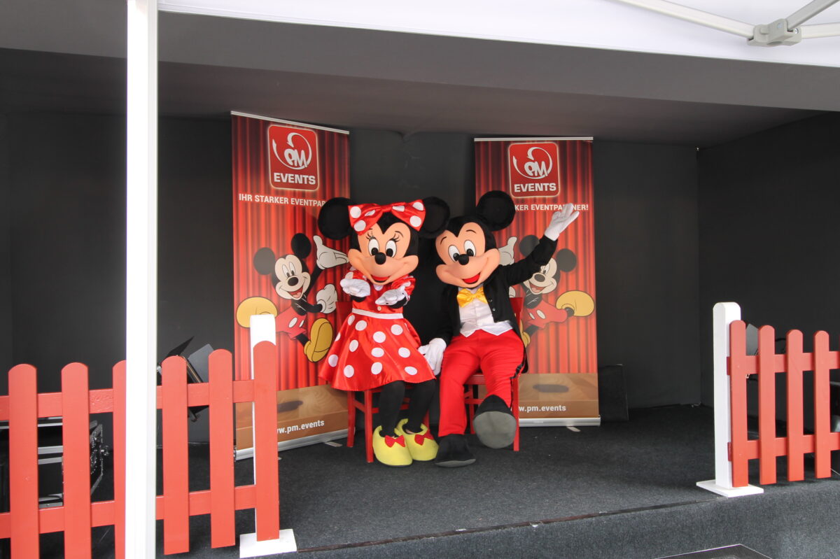 Wie schon beim 30. Jubiläums-Bürgerfest vor zwei Jahren hatte das Festprogramm freilich nicht erst mit dem Festzug der Vereine und Stadtbehörden von der Kirche zum Platz am Weihertürl und dem Anzapfen begonnen. Schon zum Nachmittagsprogramm hatten sich viele vor allem junge Besucher eingefunden, um das Kaffee- und Kuchenbuffet im AWO-Heim zu „plündern“, auf der Hüpfburg zu toben, sich mit „Mickey und Minnie Mouse“ fotografieren zu lassen, am Schießstand der „Eichenlaub“-Schützen im Haus der Vereine mit dem Lichtgewehr Augen und Hand zu erproben oder sich von den Illusionskunststücken des „Zauberers vom Hexenberg“ verblüffen zu lassen.