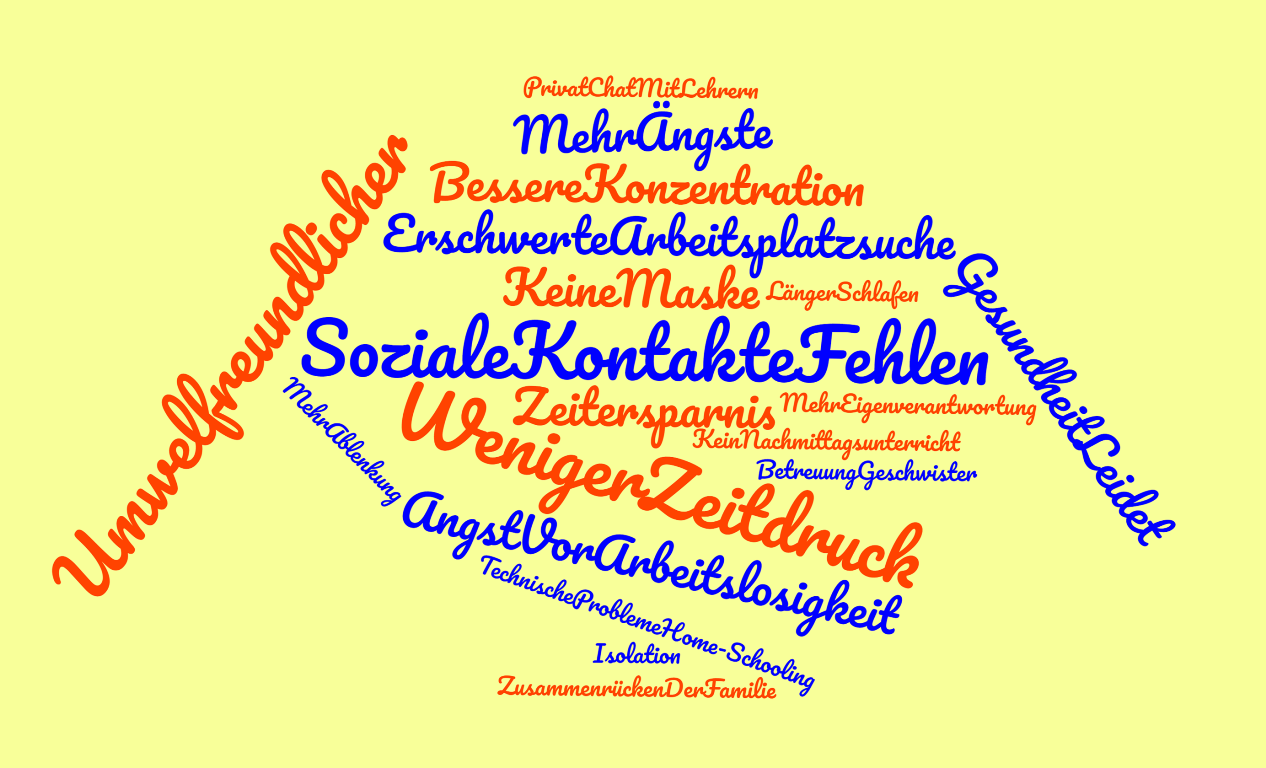 Der Arbeitsauftrag: Hand aufs Herz. Was beutet Home-Schooling, Corona, Lockdown für die Jugendlichen? Sie sollten sich Pro und Contra-Punkte überlegen. Wer wollte, hat seinen Beitrag auch für einen “Wettbewerb” freigeben können und hatte damit die Chance auf einen von drei Gutscheinen.
