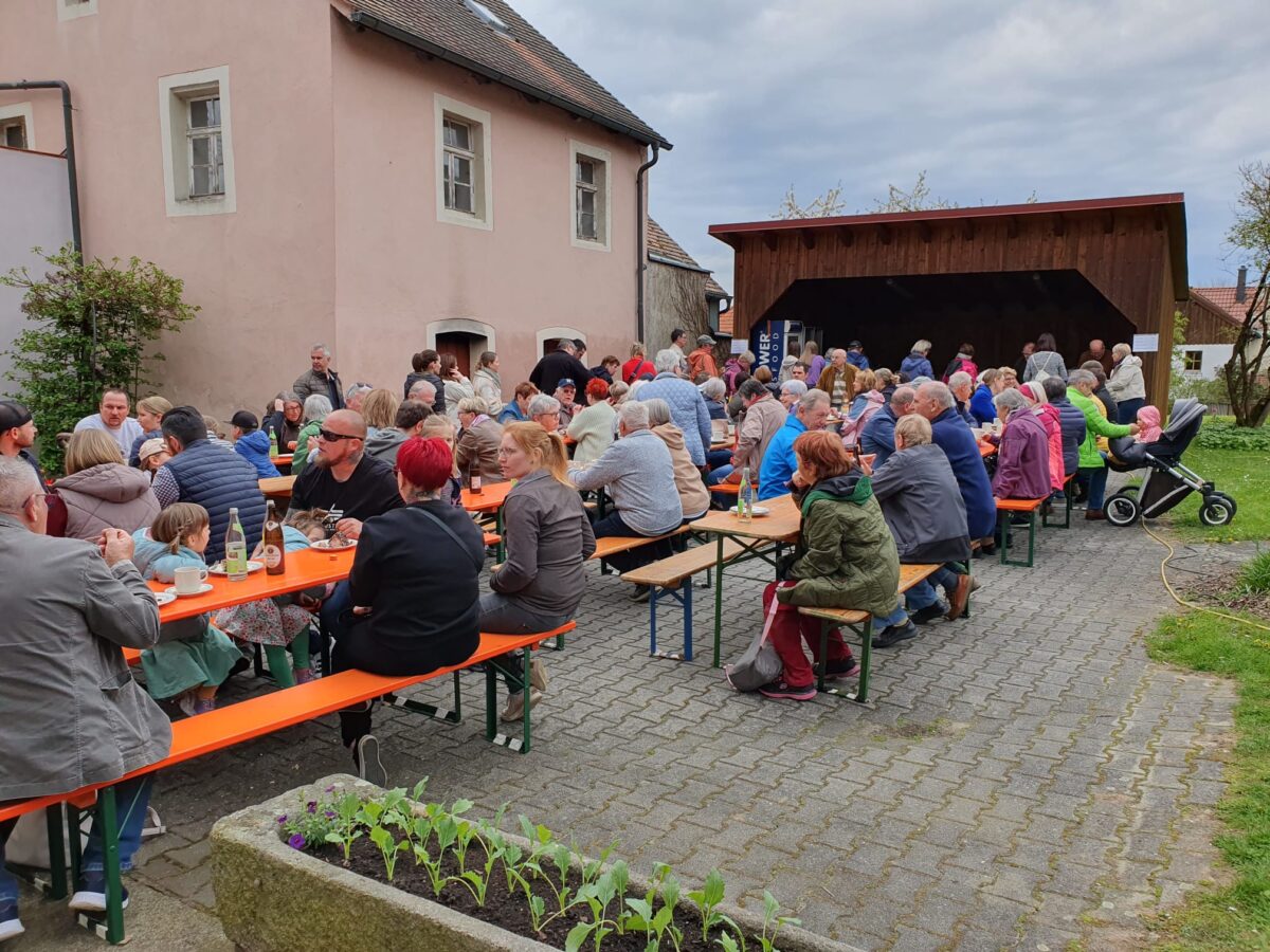 Burschenverein mit Mädchengruppe, CSU, Fischerfreunde, Freie Wähler, Freiwillige Feuerwehr, Turn- und Sportverein, Siedlergemeinschaft, SPD und Waldverein. Nach dem Aufstellen saßen und standen viele noch zusammen und genossen den Nachmittag.