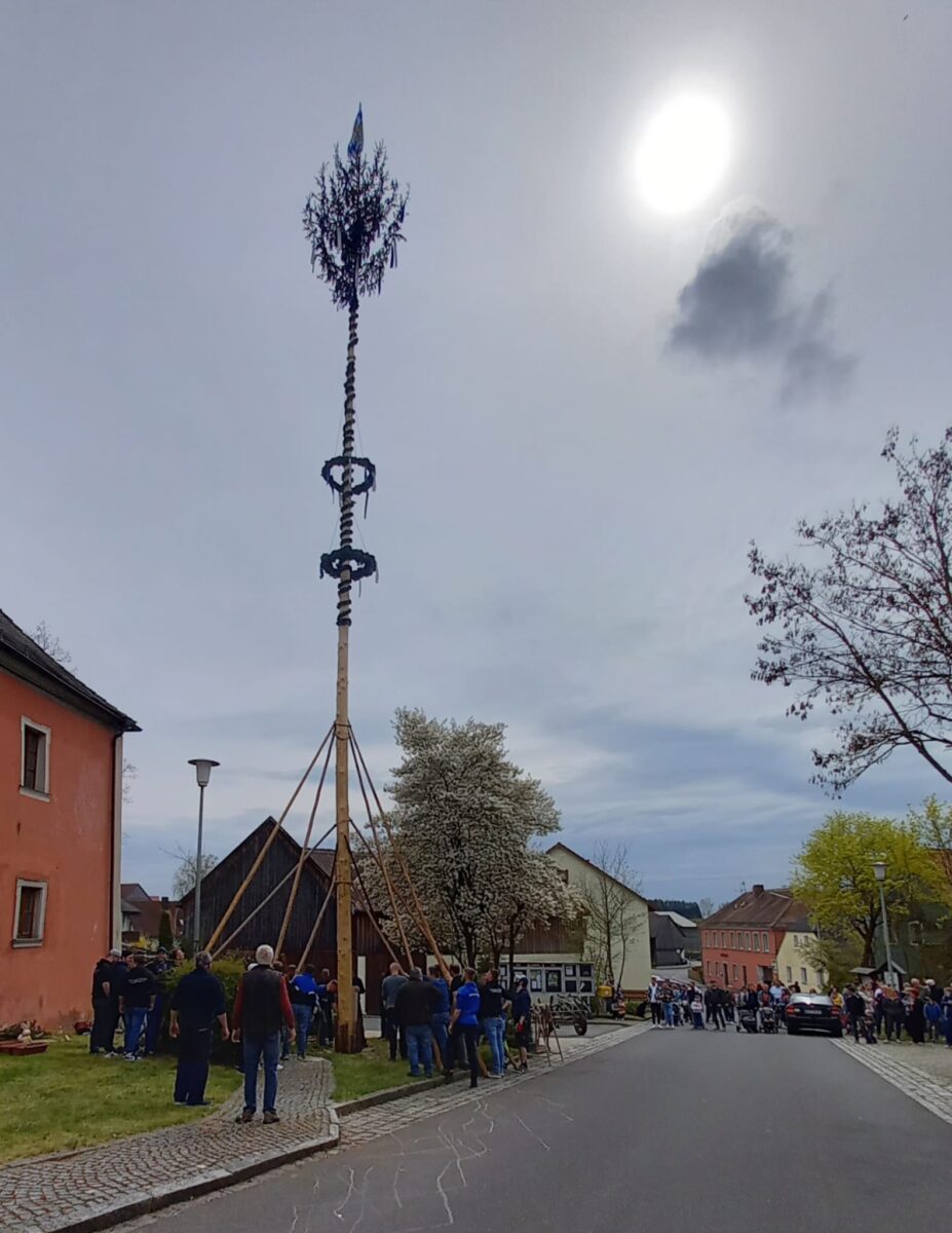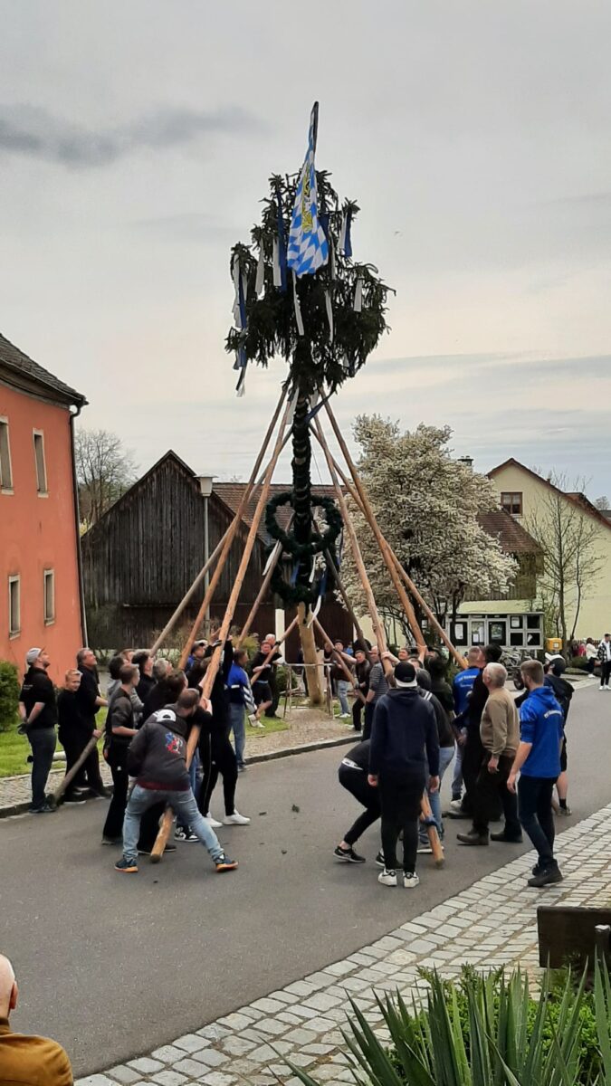 Püchersreuther Maibaum steht – ohne Maschineneinsatz