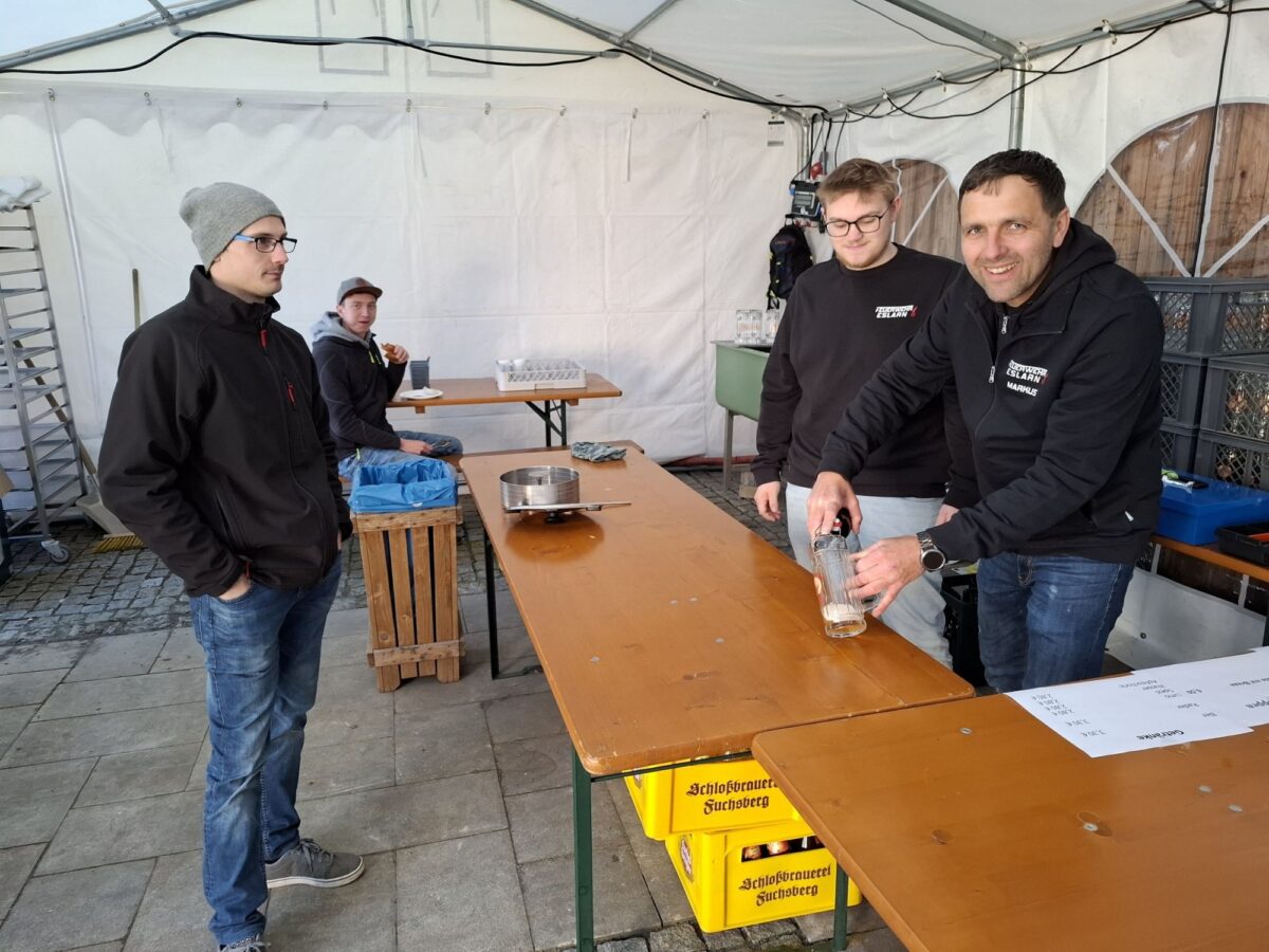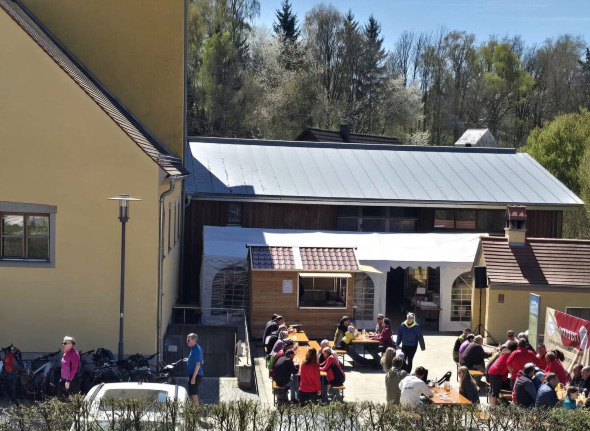 Die Mitglieder der Freiwilligen Feuerwehr um den Vorsitzenden Jürgen Bösl und den zweiten Kommandanten Markus Lehner boten einen traditionellen Frühschoppen mit Weißwurstfrühstück und flüssiger Kost. Der Elternbeirat des Kindergartens um die Vorsitzende Manuela Bösl reichte zum Kaffee leckeren, von den Eltern gespendeten Kuchen. Nach und nach gesellten sich auch weitere Radlerinnen und Radler, Familien und Ausflügler dazu. Die Gäste konnten es sich sowohl im Freien als auch – bei Bedarf – in der Festhalle gemütlich machen. Einblicke in die regionale Braukunst bot zudem das Biererlebnis-Museum im Kommunbrauhaus.