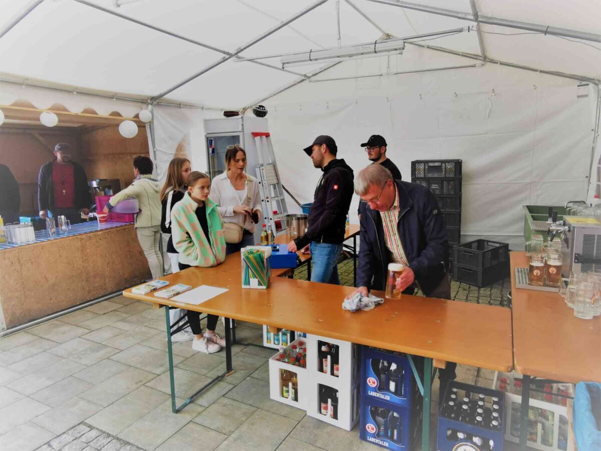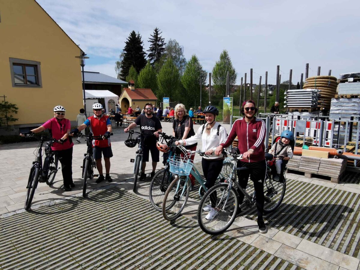 Mit einem Braten war auch für den Mittagstisch und mit leckeren hausgemachten Kuchen auch für den Nachmittagskaffee bestens gesorgt. Den Ausschank mit Verpflegung übernahm die FFW und für Kaffee mit Kuchen sorgte der Elternbeirat des Kindergartens mit Unterstützung von Eltern. Aufgrund des herrlichen Wetters versammelten sich die Radfreunde und Gäste vor der Festhalle und genossen die Aussicht in Richtung Kurpark. An der vorhandenen Ladestation konnte der ein oder andere sein Fahrzeug aufladen, sich auf den Bänken bequem machen und gut gesättigt den Weg mit dem „aufgetankten“ Rad oder bequem im Bus seinen Ausflug fortsetzen. Wer wollte, konnte vor der Abfahrt auch einen Blick ins „Biererlebnis“ einplanen.