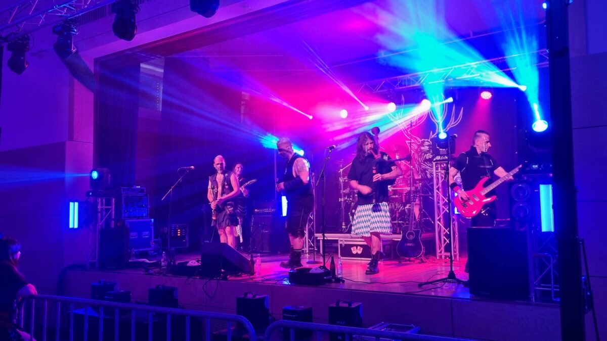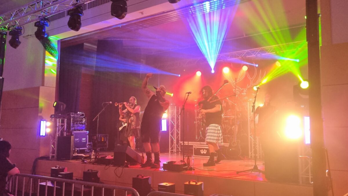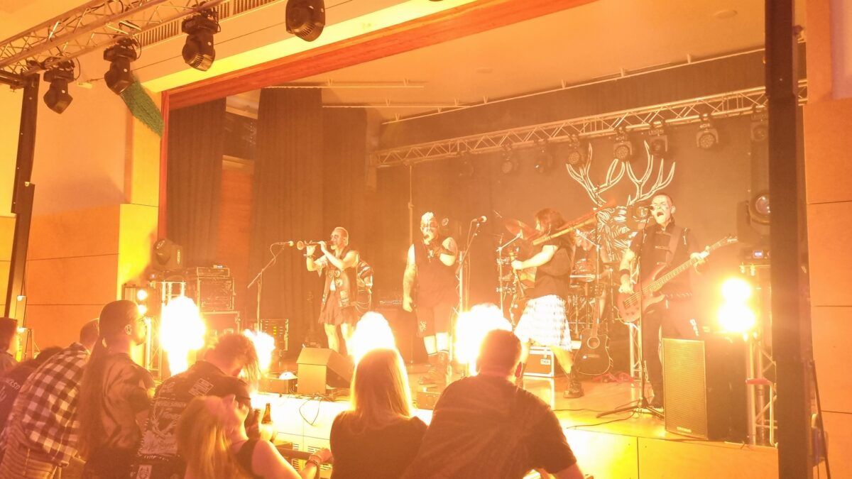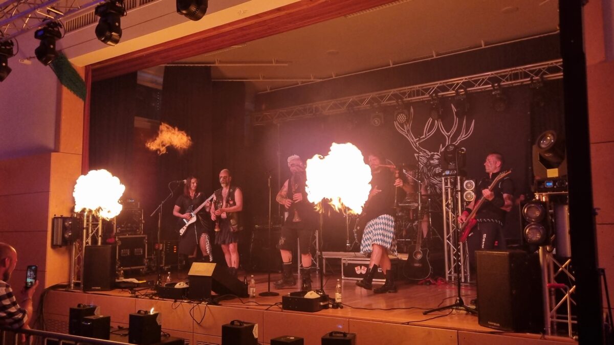 Wilde Töne und die laute Stimme von Noah Lugert prägten den Sound des Abends. Michael Stein an den Drums, Johann Lugert mit Perkussion, Jasmin Stein an der Gitarre und Bassist Sandro Lugert sowie die beiden Dudelsackspieler Moritz Kirchner und Kai Vogl beherrschten ihre Songs perfekt. Mit der Performance standen sie einer Band wie „In Extremo“ in nichts nach. Pyroeffekte begleiteten die Songs. Bei Songs wie „Mordio“, „Jagdzeit“ oder „Spielleut“ meinte man, die Landsknechte müssten zur Tür hereinmarschieren.