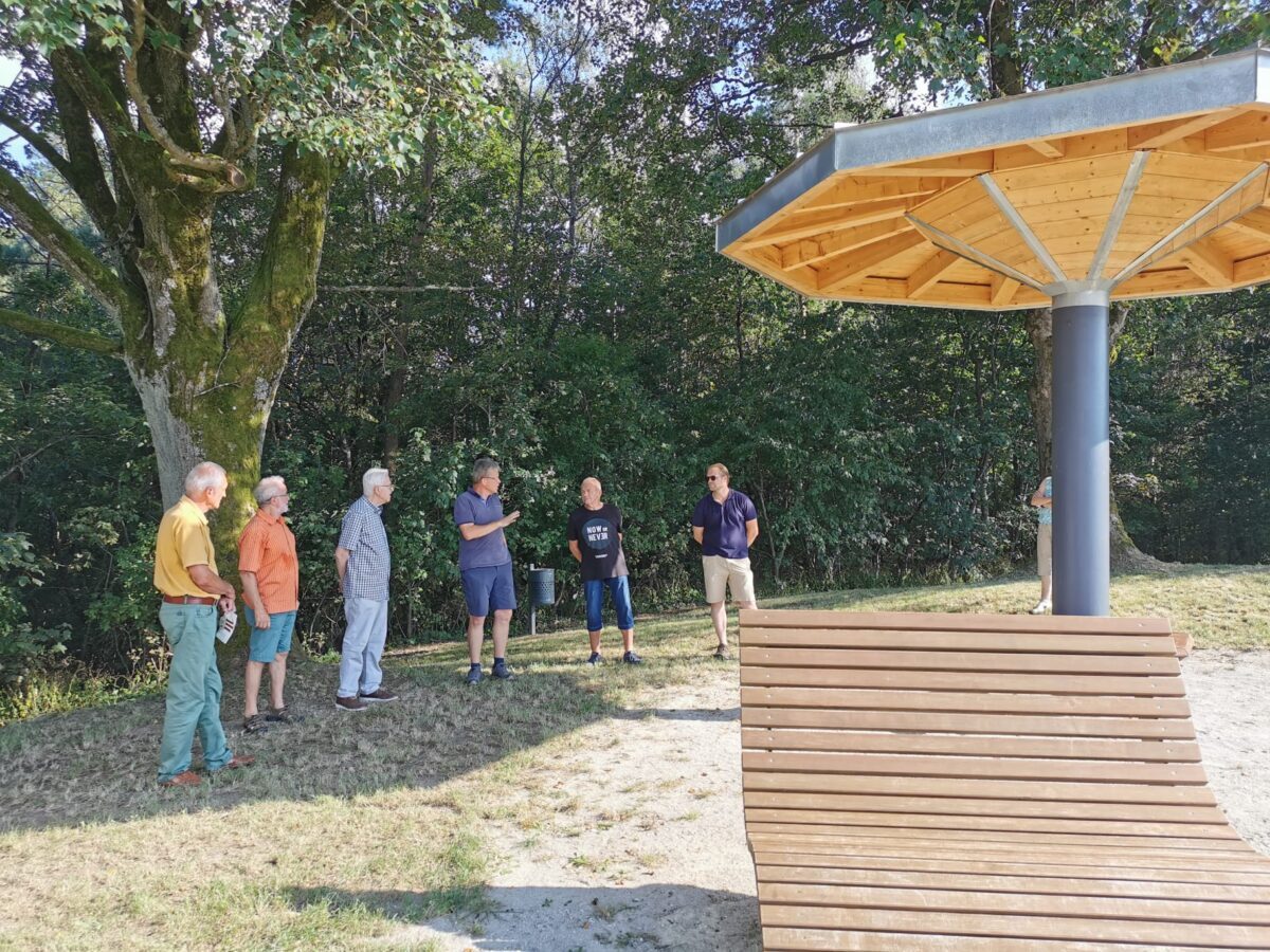 Das Projekt wurde mit EU-Fördergeldern unterstützt, aber ohne ehrenamtliches Engagement wäre es trotzdem nicht gegangen, so Bürgermeister Gerhard List. “Ich möchte ich mich ganz herzlich bei Herbert Harbig bedanken, der mit handwerklicher Perfektion den ‘Pilz’ mit einem neuen Blechdach versehen hat.” Die Holzkonstruktion kam von der Firma Holzbau Blödt, die Liegen wurden vom HPZ-Irchenrieth angefertigt. Der Bauhof kümmerte sich um die Platzgestaltung.