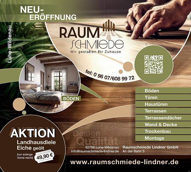Wer schöner wohnen will, achtet auf die Details und überlässt dabei nichts dem Zufall. Der neue Showroom in Luhe-Wildenau präsentiert hochwertige Lösungen für die Gestaltung von Böden, Türen, Terrassen, Terrassenüberdachungen, Wand- und Deckengestaltung, Trockenbau, Sichtschutz und mehr. So erhalten die Gäste bereits einen ersten Vorgeschmack, wie die Raumschmiede das Zuhause in etwas ganz Besonderes verwandelt.