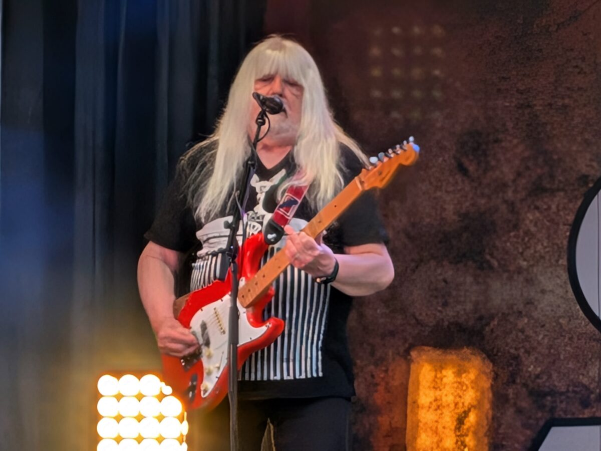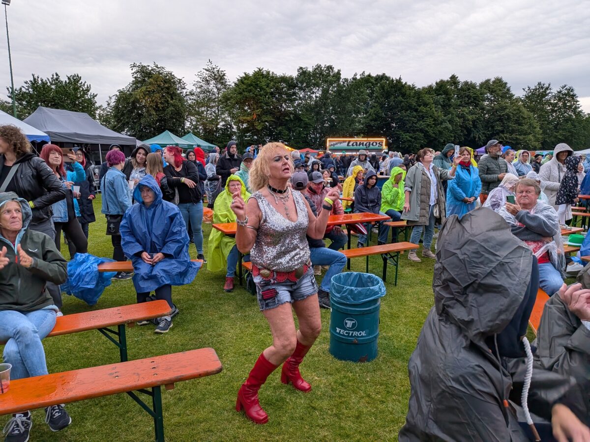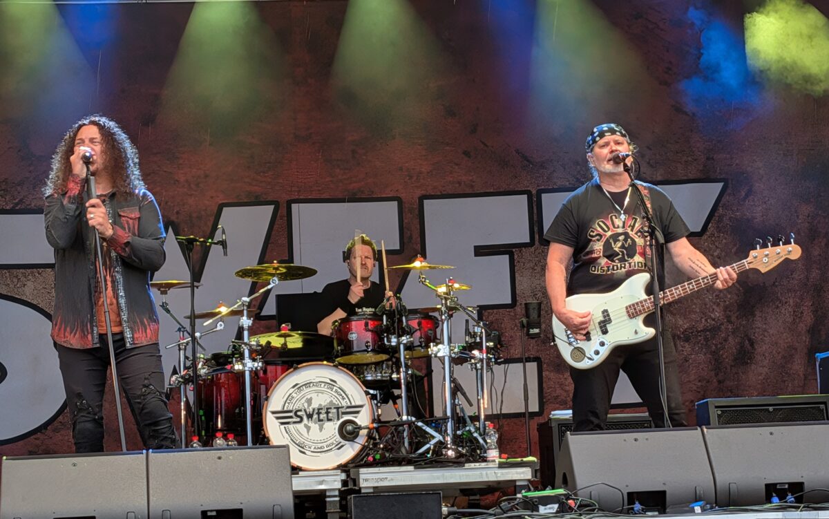 Dann folgte dann das absolute Highlight des Abends. Als „The Sweet“ mit der Original-Ikone Andy Scott die Bühne betraten, gab es bei den Fans kein Halten mehr. Von Anfang an wurde die britische Rockband frenetisch abgefeiert. Die fünf Musiker von der Insel blieben nichts schuldig und knallten den begeisterten Festival-Gästen einen Hit nach dem anderen um die Ohren. Das Open-Air Gelände in Tännesberg wurde schnell zur „The Sweet-Fan Meile“ umfunktioniert. Überall tanzende und singende Menschen, die in ihre Vergangenheit eintauchten und die Mega-Hits aus ihrer Jugend so richtig genossen. „ Blockbuster“, „Fox on the Run“, „Hell Raiser“, Poppa Joe“ oder „Love is Like Oxygen“ waren nur einige Titel einer unglaublichen Ansammlung von Charterfolgen. Erst nach einer längeren Zugabe, die u.a. mit „Ballroom Blitz“ zelebriert wurde durfte die Band die Bühne verlassen.