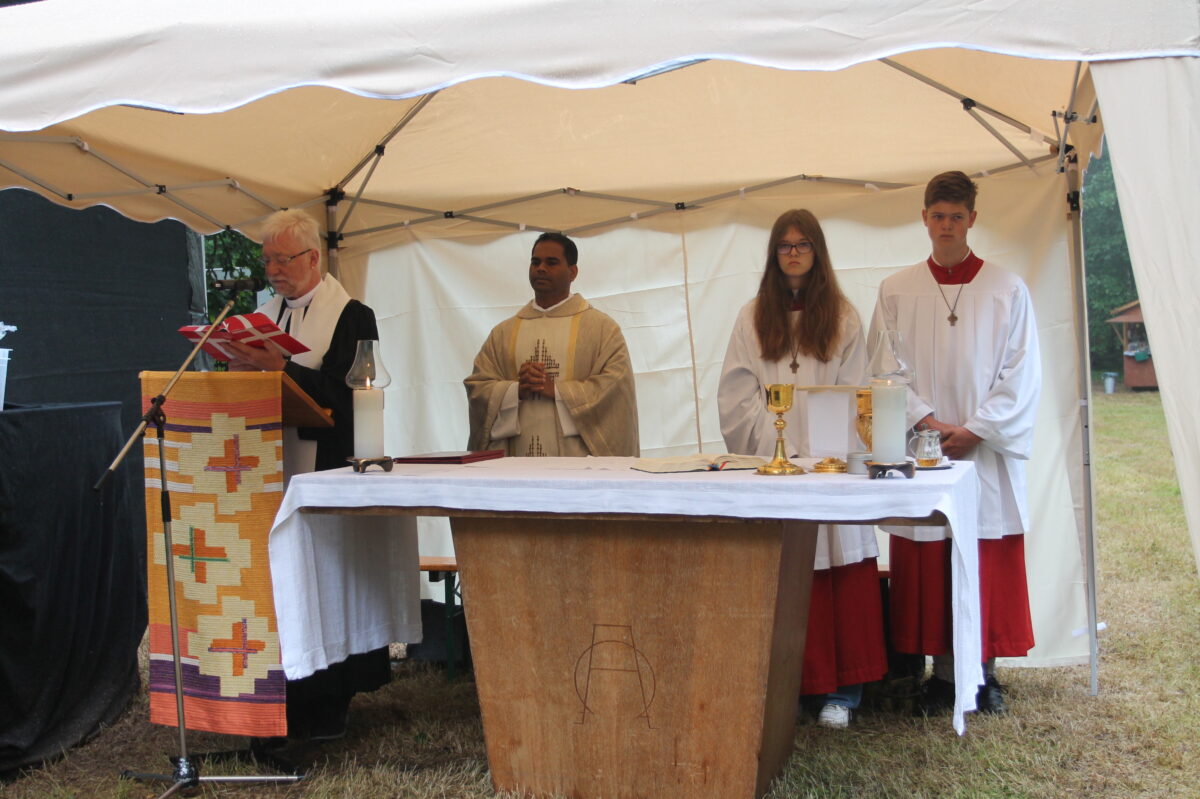 Der Psalm „Lobe den Herrn, meine Seele, und vergiss nicht, was er dir Gutes getan hat“, stellte der evangelische Pfarrer Wilfried Römischer im ökumenischen Gottesdienst mit Pfarrer John Subash Vincent in den Mittelpunkt seiner Predigt. Und im Hinblick auf die Partnerschaft zwischen Georgenberg und Wirsberg war Römischer sicher: „Sie kann man nicht verordnen, sie kann nur wachsen aus freien und offenen Begegnungen.“ Dabei erinnerte er auch an die historischen Verbindungen aus dem 15. Jahrhundert und sprach im Rahmen des Aufschwungs durch die Wirsberger von einer „Win-win-Situation für die Adelsfamilie und die Menschen hier“.
