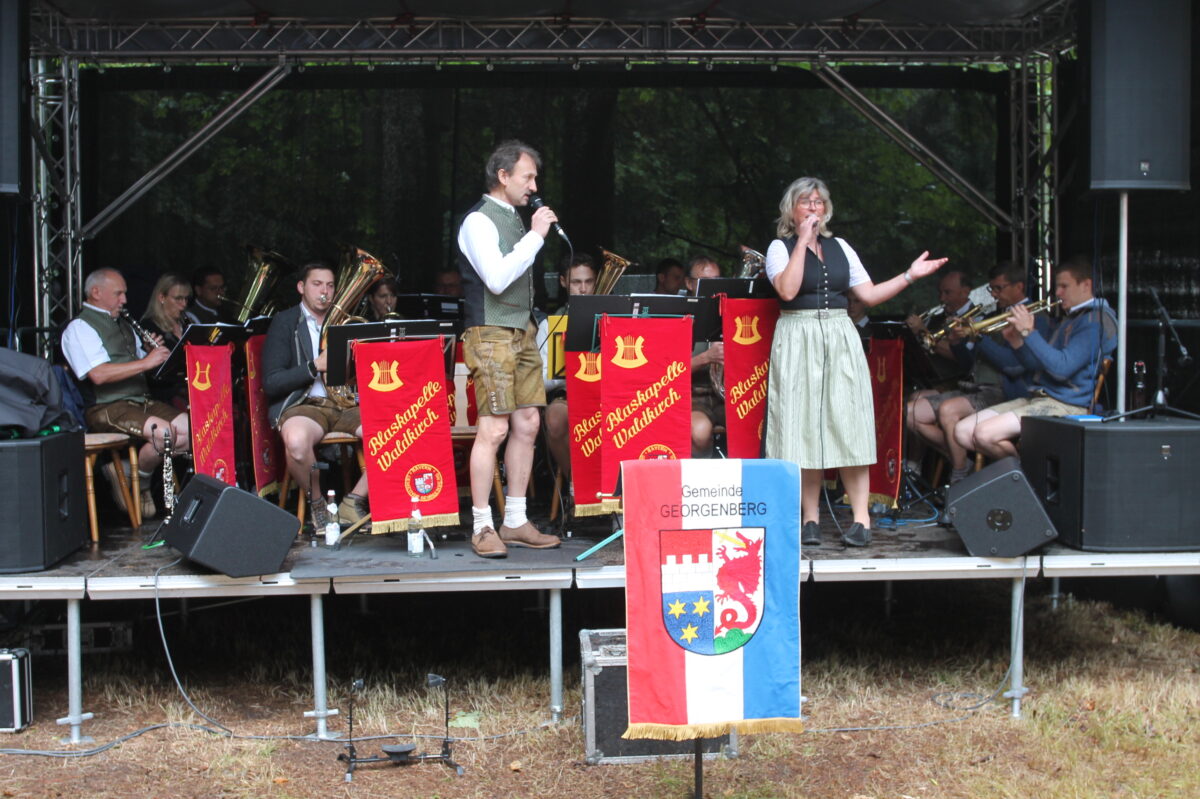 Die Blaskapelle Waldkirch unter der Leitung von Bernhard Träger hatte bereits die Eucharistiefeier mitgestaltet und erntete beim Frühschoppen viel Beifall. Nahtlos ging es musikalisch am frühen Nachmittag weiter. Perfekt zugeschnitten für das historische Fest war das Gastspiel der „Amici Musicae Antiquae“. Die Gruppe um Alois Meindl begeisterte mit Musik und Gesang aus dem Mittelalter, auch dank der Tänzerin Micaela.