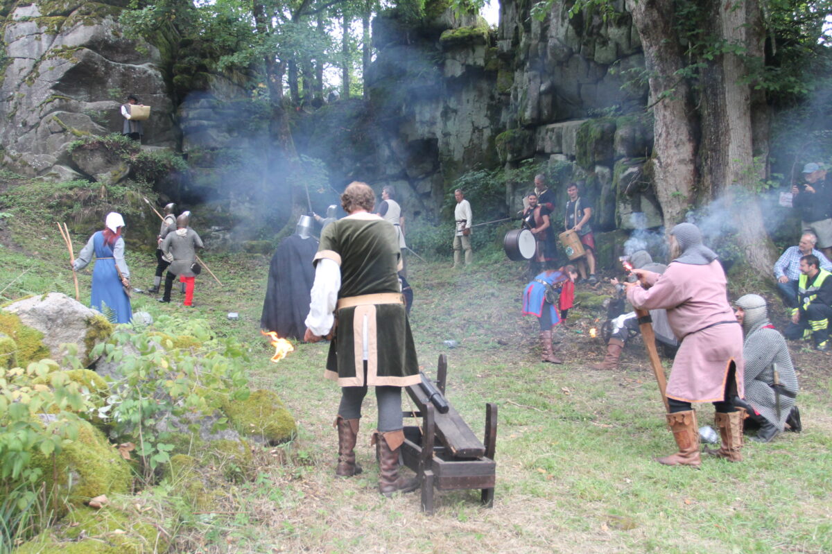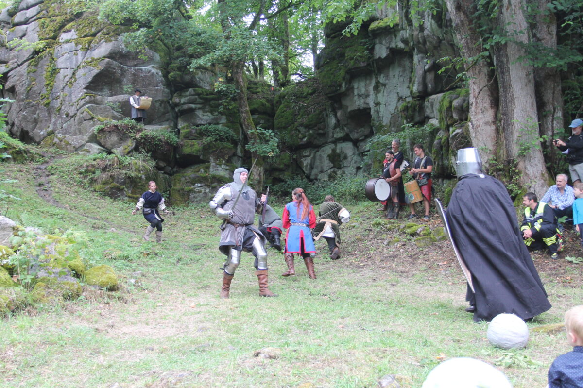 „Das war der 12. Juli 1498, als der Hauptmann Konrad von Wirsberg voller Stolz berichten konnte, ‚die Sach so kürzlich zu End gebracht‘ zu haben“, hatte die Bürgermeisterin den Höhepunkt des Burgfestes bereits angekündigt. Oswald Hamann ließ inmitten der Burgruine die Geschichte vor 525 Jahren und davor aufleben, bevor die im tschechischen Tachov beheimatete Gruppe „Zlatý Grál“ (Goldener Kral) gemeinsam mit dem Theaterverein „Wir im Bärnauer Land“ mit Alfred Wolf die Erstürmung der Burg aufleben ließ. Bei dem großartigen Schauspiel krachten Kanonen, bis die Widersacher in Gefangenschaft genommen werden konnten.