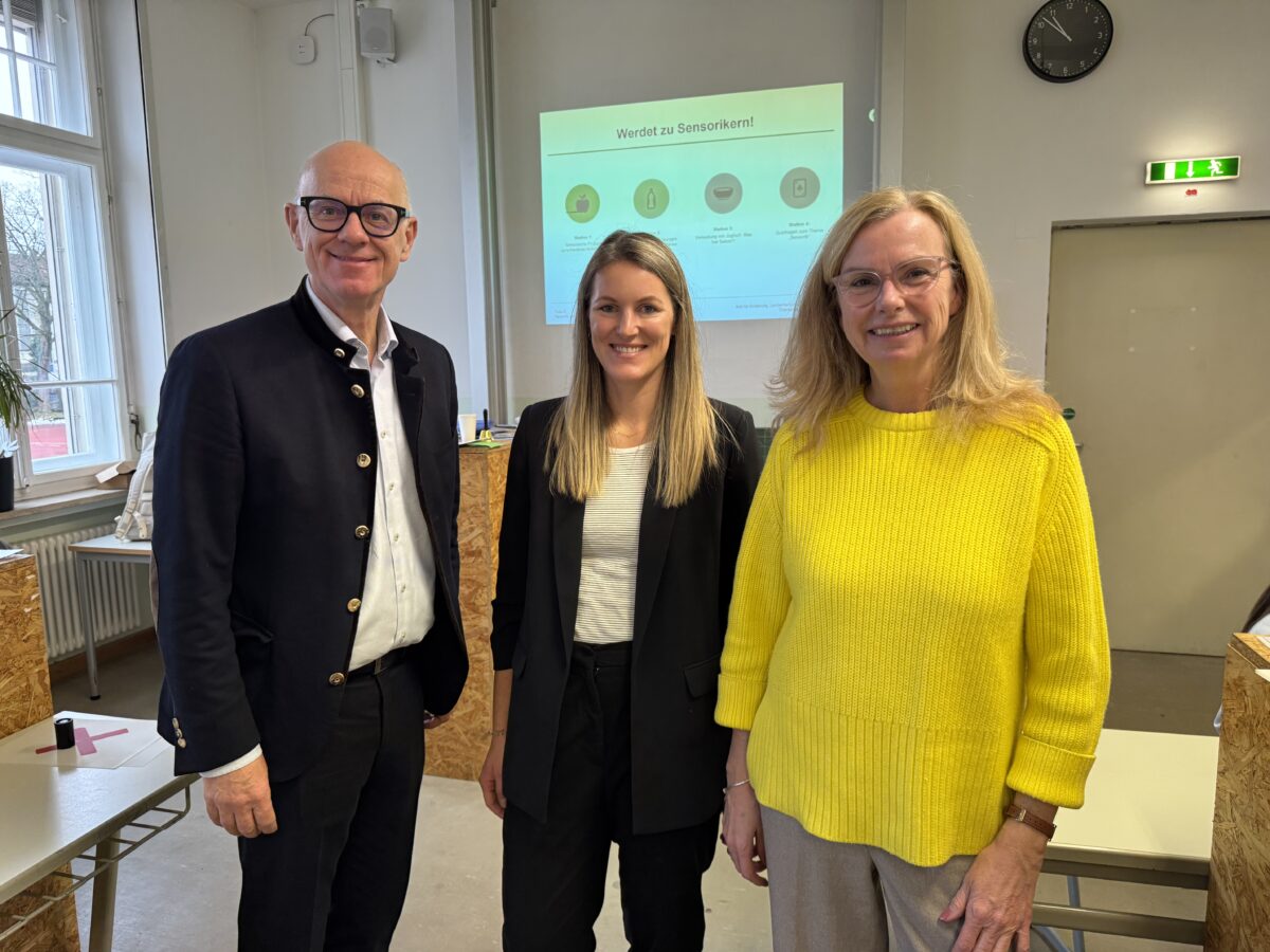 Regensburg – Am 2. Dezember 2025 führte Cornelia Werner für das Amt für Ernährung, Landwirtschaft und Forsten Tirschenreuth-Weiden (AELF) im Rahmen der Projekttage „Alltagskompetenzen“ an der Pestalozzi Mittelschule Regensburg das Projekt Sensorik-Koffer in den siebten Klassen durch. Zu Gast war auch der Oberpfälzer Regierungspräsident Herr Walter Jonas.