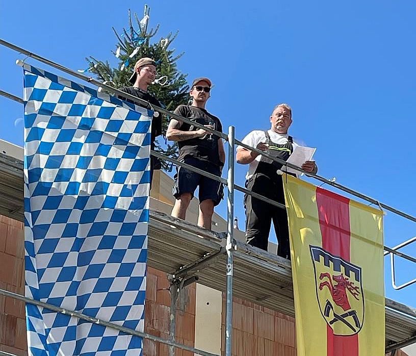 Zimmermann Thomas Schnierer sprach den Richtspruch. Dabei führte er aus, dass nach Wochen schwerer Arbeit das Bauwerk zum Rohbau sich gefügt und mit dem Dach hoch in das Land zeige. Er erhob sein Glas, um den Bauherrn und den Planern weiterhin alles Gute zu wünschen. Als Wunsch brachte er zum Ausdruck, dass das Gebäude geschützt vor Hagel, Blitz und Feuerbrunst bleibe und Gott es segne mit seiner Gunst.