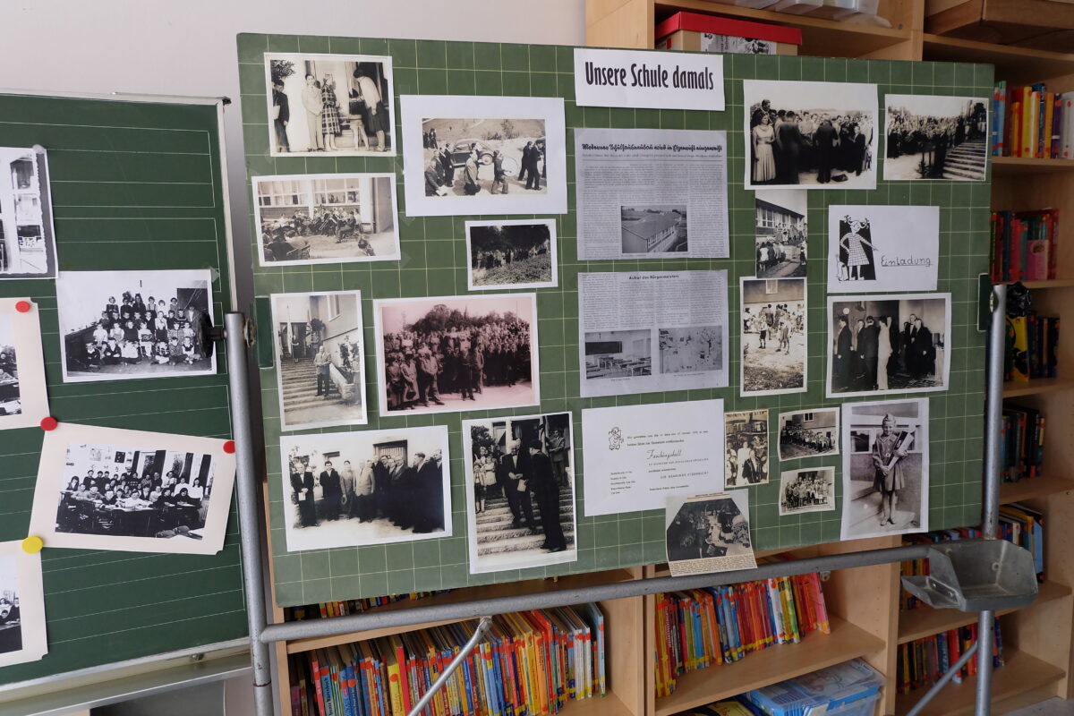 In der Bücherei fanden die Gäste verschiedene Schulgegenstände aus der Vergangenheit, alte Bücher und viele Fotografien, auf denen sich die ein oder andere ältere Person auch wiederfand. Mit Getränken, Kuchen und kleinen Snacks hatte der Elternbeirat in den Räumen der offenen Ganztagsschule Vorbereitungen getroffen.