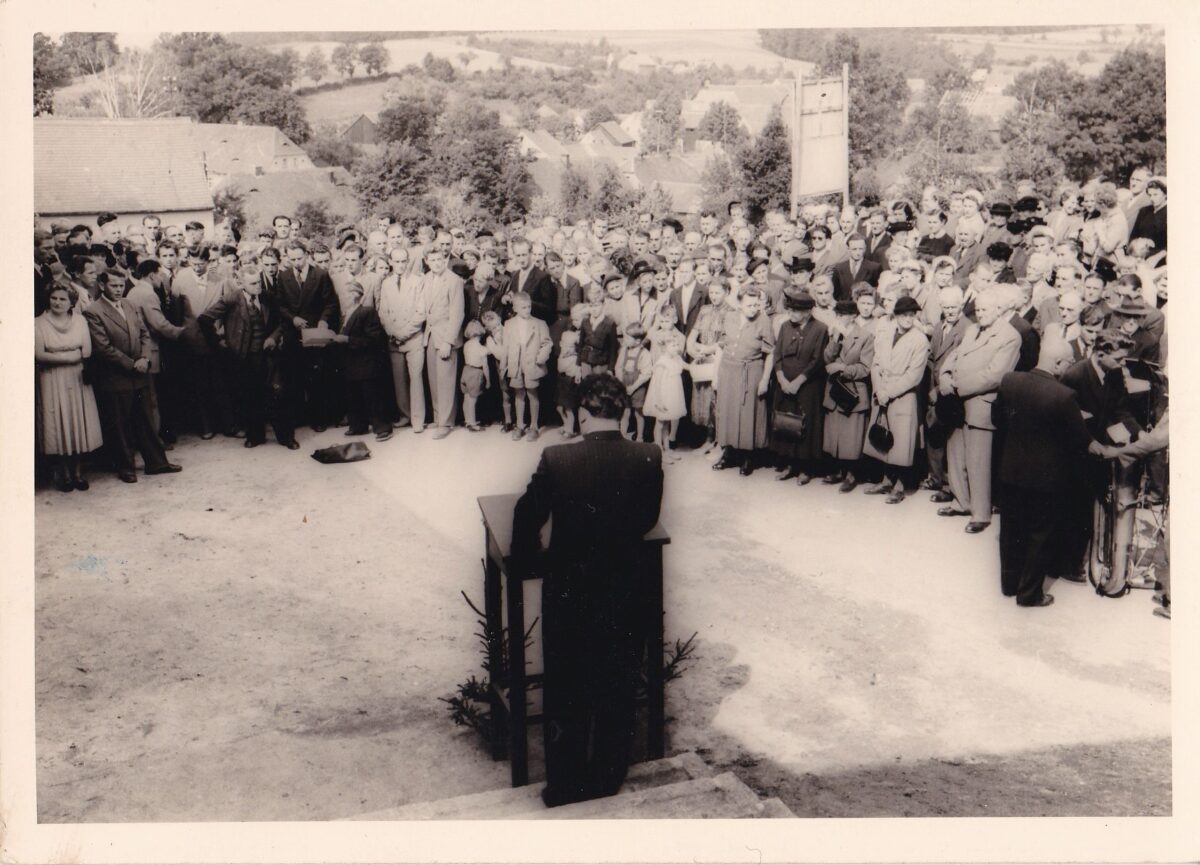 Nach dem Beschluß im Gemeinderat im November 1952, ein neues Schulhaus hier auf dem Berg zu errichten, wurde dies von den beiden jungen Weidener Architekten Macht und Schneeberger geplant. „Der Betrag von 250 000 DM für die umfänglichen Baukosten, erscheint heute wenig zu sein, war aber in der damaligen Zeit ein großer Kraftakt für die Gemeinde“, berichtete Bäumler. Neben Tanzveranstaltungen wurden Eigenleistungen durch die tatkräftige Mitarbeit der Bürger erbracht, sowie Spenden in Form von Geld aber auch Bauholz gesammelt.