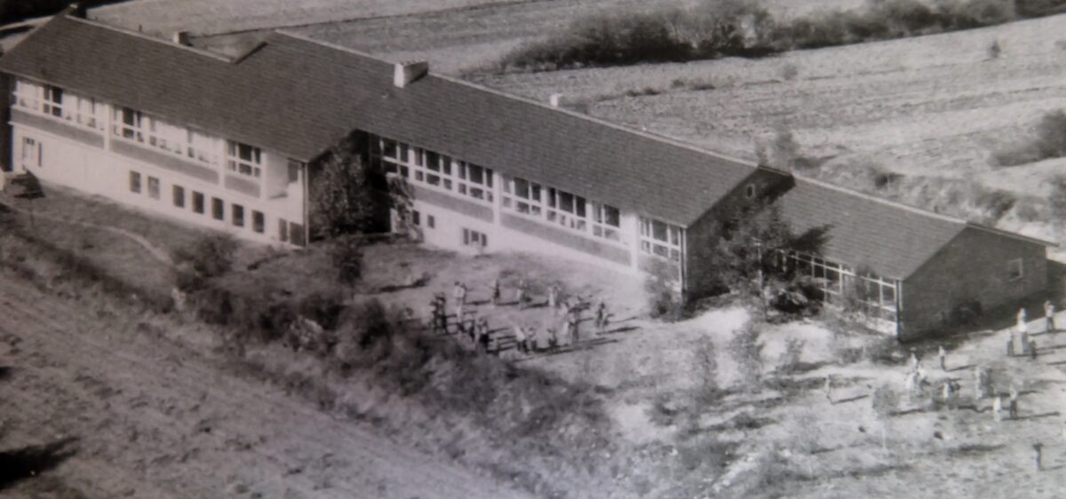 Vier Klassenzimmer gab es damals im neuen Schulhaus. Eines für die Unterklasse (Jahrgangsstufe 1, 2 und 3)mit 28 Schülern, eins für die Mittelklasse ( 4., 5. und 6. Jahrgangsstufe) mit 27 Schülern, ein Klassenzimmer für die Oberstufe (7. und 8. Jahrgangsstufe) mit 29 Schülern. Im vierten Raum wurden die 28 evangelischen Schülerinnen und Schüler der Klasse 1 – 8 gemeinsam unterrichtet.