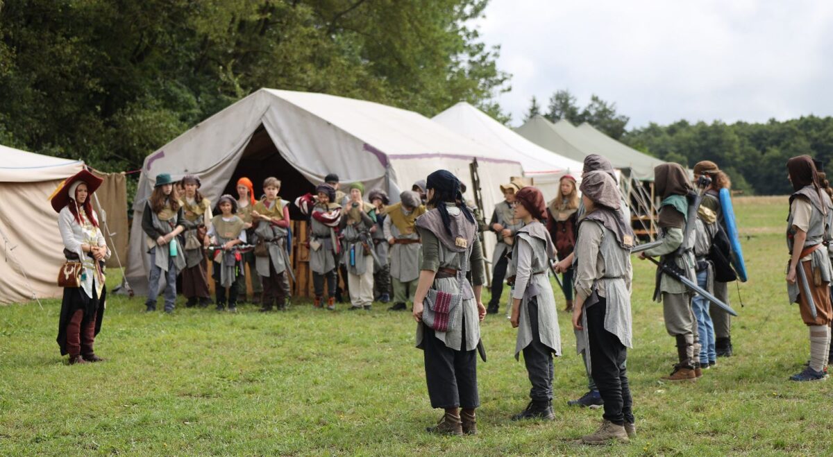 Zu diesem Event sind wieder über 40 Jugendliche und rund 20 Teammitglieder aus ganz Deutschland angereist. Im Alter zwischen elf und 25 Jahren werden die Teilnehmenden im Ausbildungs-Camp „Sturmherz“ in ihre ritterlichen Pflichten eingewiesen.