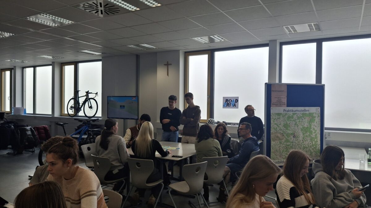 Um einen möglichst genauen, anschaulichen Einblick zu bekommen, lässt das ,,Road2Riva“-Team im Klassenzimmer mehrere Stationen entstehen, um die Planung und Organisation der Rennradtour anschaulich zu gestalten. Als Erstes wurde die geplante Route detailgenau demonstriert. Sie führt von Regensburg über München und Garmisch-Partenkirchen, weiter über den Reschenpass und das Stilfser Joch, durch Meran und Bozen bis zum Ziel Lago di Garda.