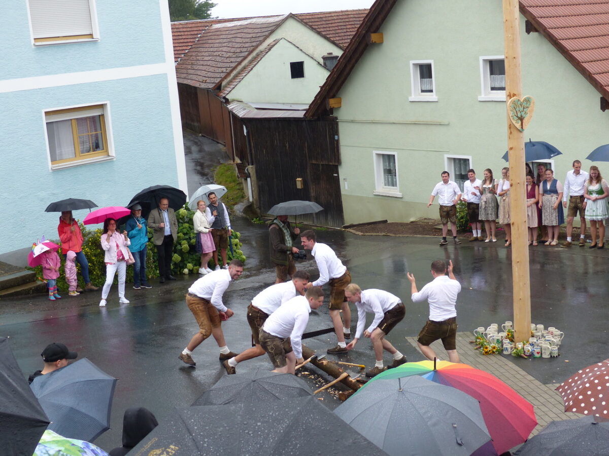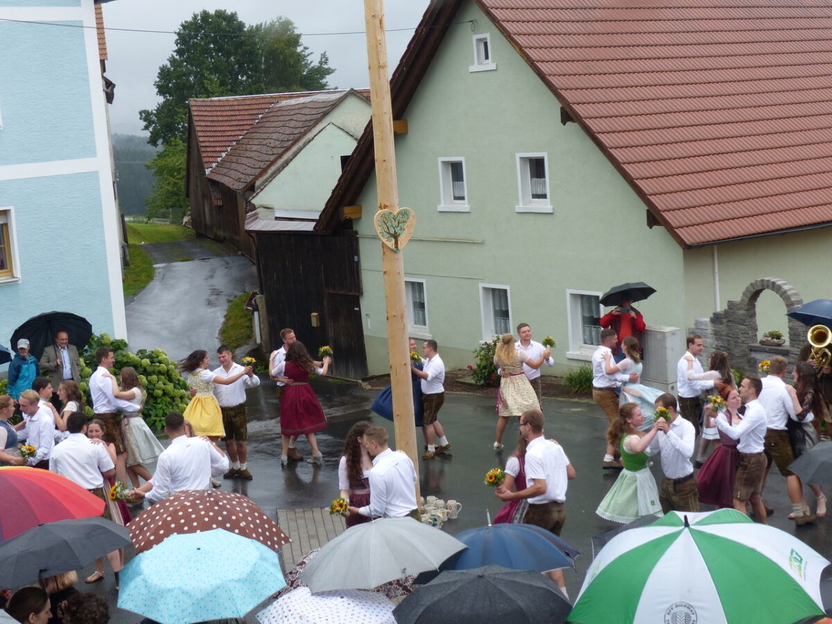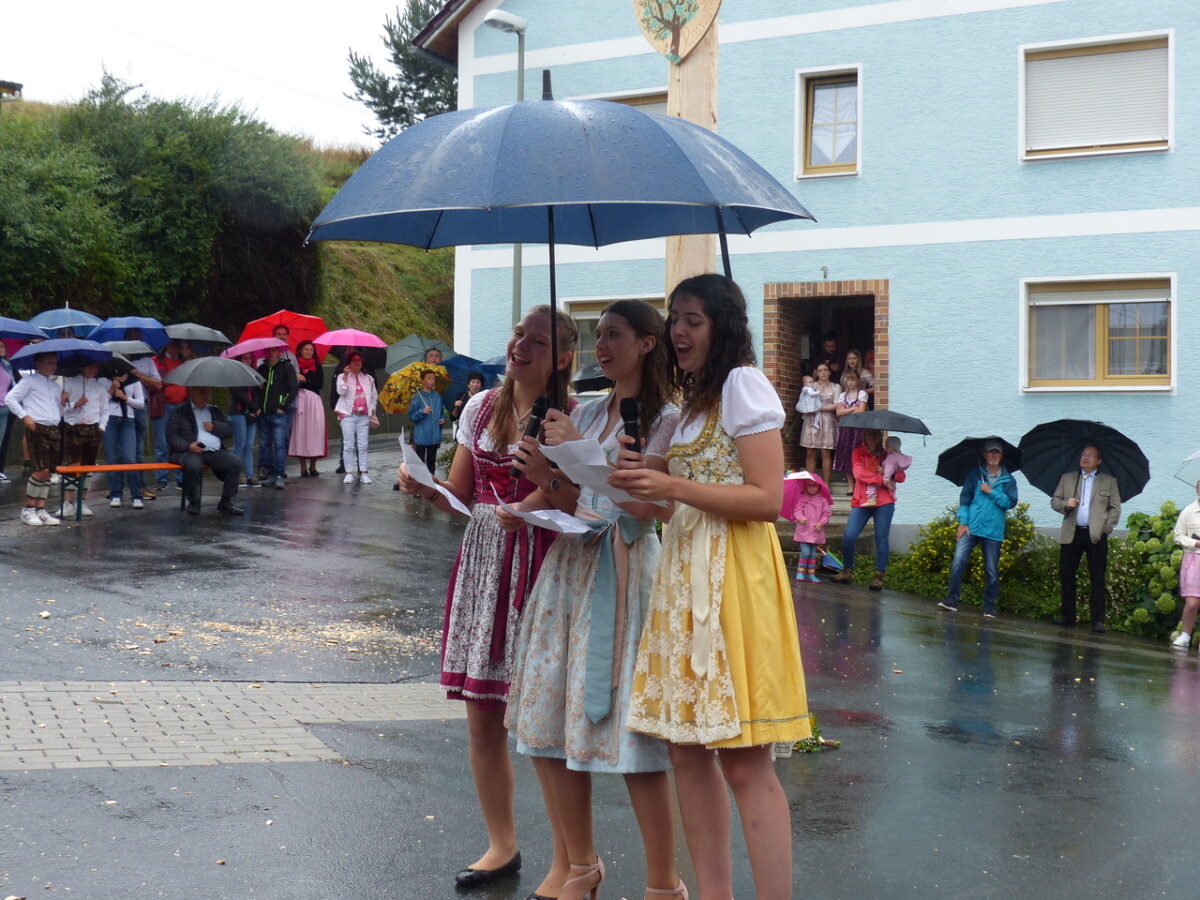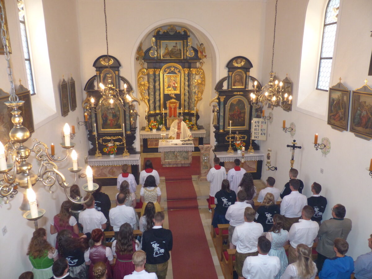 Es zeigte, dass die Jugendlichen sich von nichts erschüttern lassen und ausgelassen tanzten und sangen: „Wer hat Kirwa – mir hom Kirwa!“ Zuvor feierten sie gemeinsam mit den Einheimischen, unter ihnen auch Bürgermeister Ludwig Gürtler, sehr vielen Gästen und Pfarrer Adam Nieciecki den Gottesdienst in der St. Emmeramskirche.