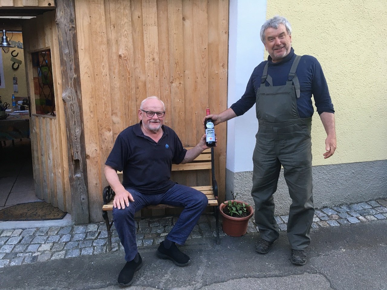 Zur Zeit ist der Vorsitzende der Christlich Sozialen Union (CSU) Rainer Schmeidl unterwegs um „roten Impfstoff“ an die Mitglieder zu verteilen. In Form von Weinflaschen mit Rotwein übergibt er ihn persönlich an die CSUler.