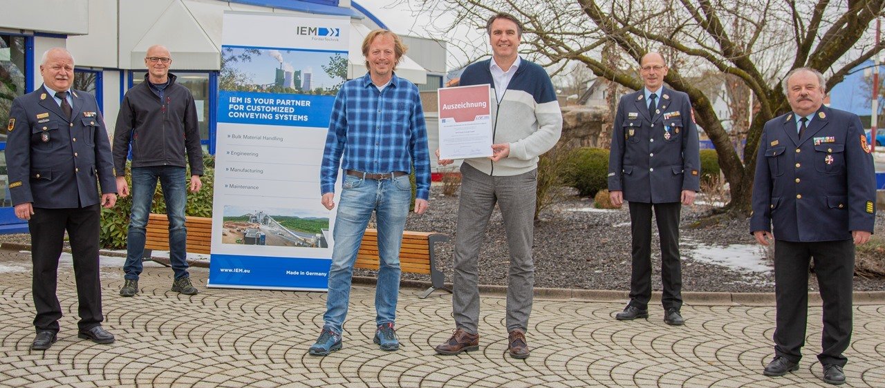 Mit dieser Förderplakette werden Unternehmen, die in besonderem Maße die Ehrenamtlichkeit und Freiwilligkeit in den Feuerwehren fördern, geehrt. Es kommt auf Betriebe wie die IEM an, die ihre Mitarbeiter unterstützt, damit diese ihr Ehrenamt auch während der Arbeitszeit wahrnehmen können.